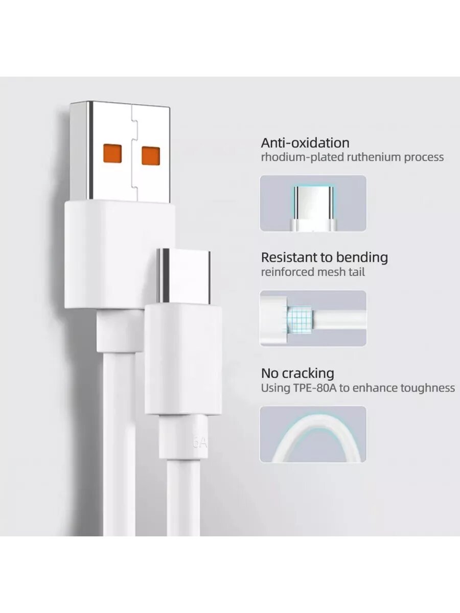 Кабель Type-C для быстрой зарядки, Realme 65 Ватт 6 ампер 1 метр интересное: