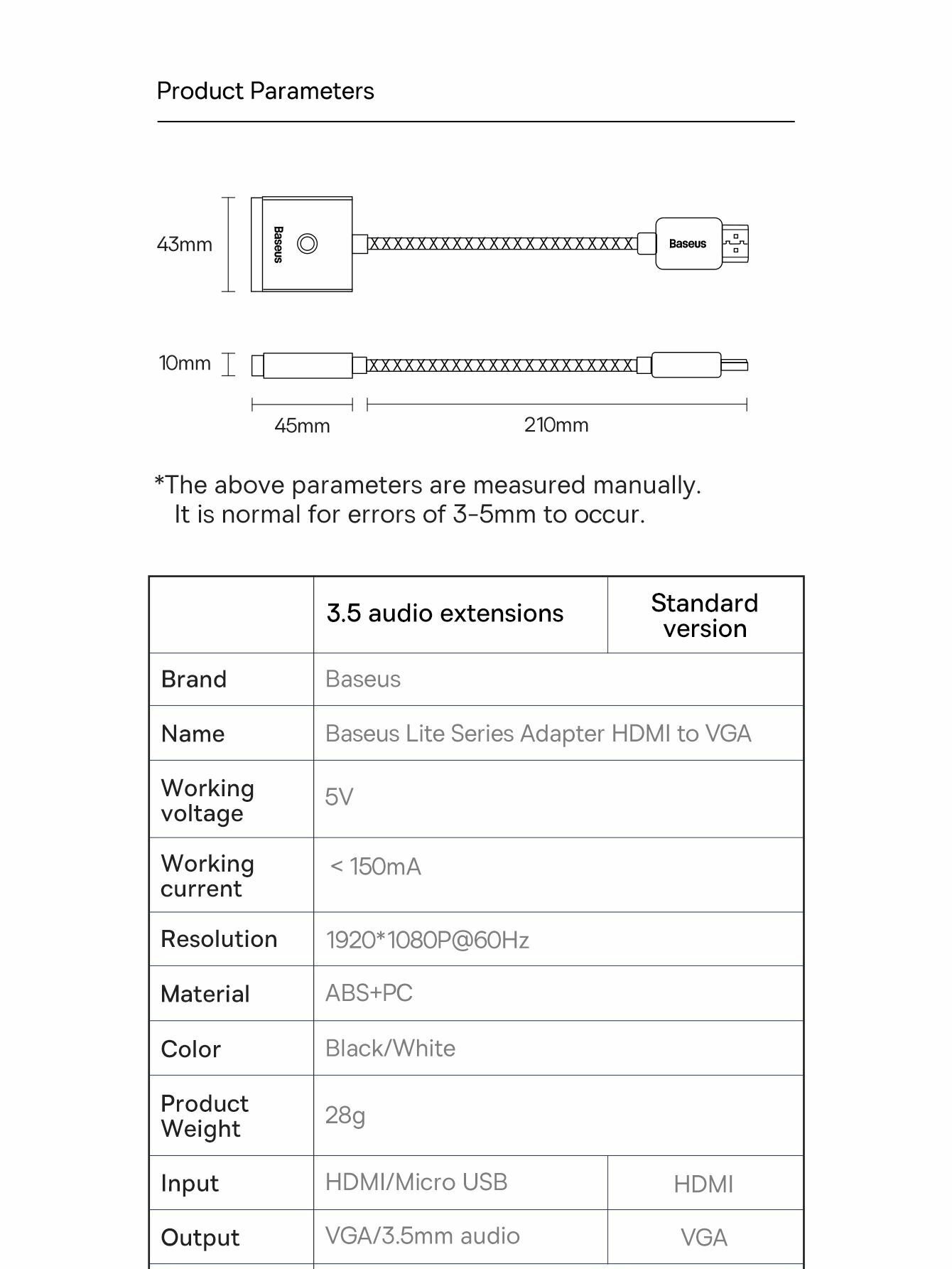 Переходник адаптер Baseus AIRJOY HDMI to VGA , HD 1080P (WKQX010001) черный интересное: