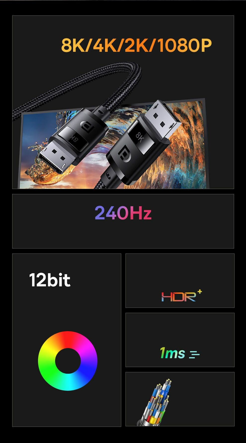 Кабель Baseus HIGH DEFINITION, DisplayPort to DisplayPort 8K (B00633706111-02) 2 метра интересное: