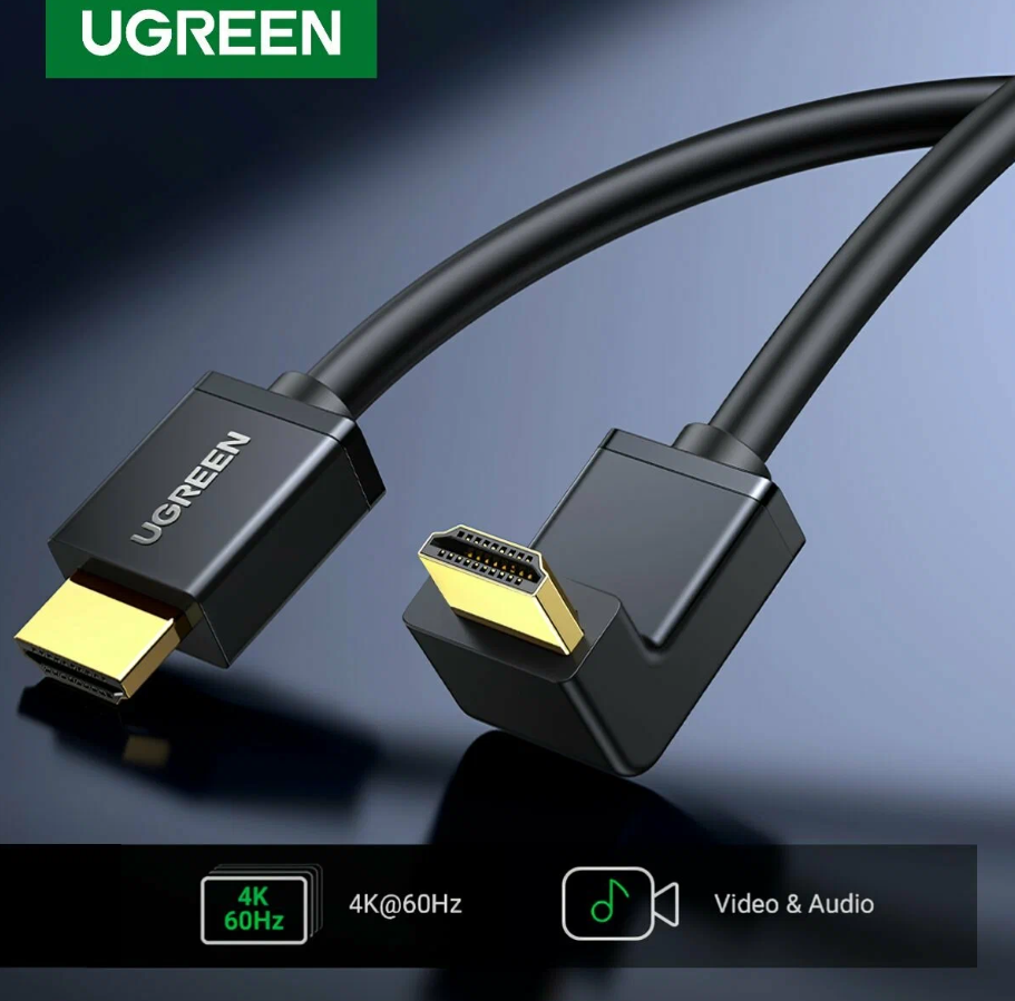 Кабель Ugreen HD103-10173 HDMI (M) 1.4 - HDMI 1.4 (M), угловой 90°, 2m, Black интересное:
