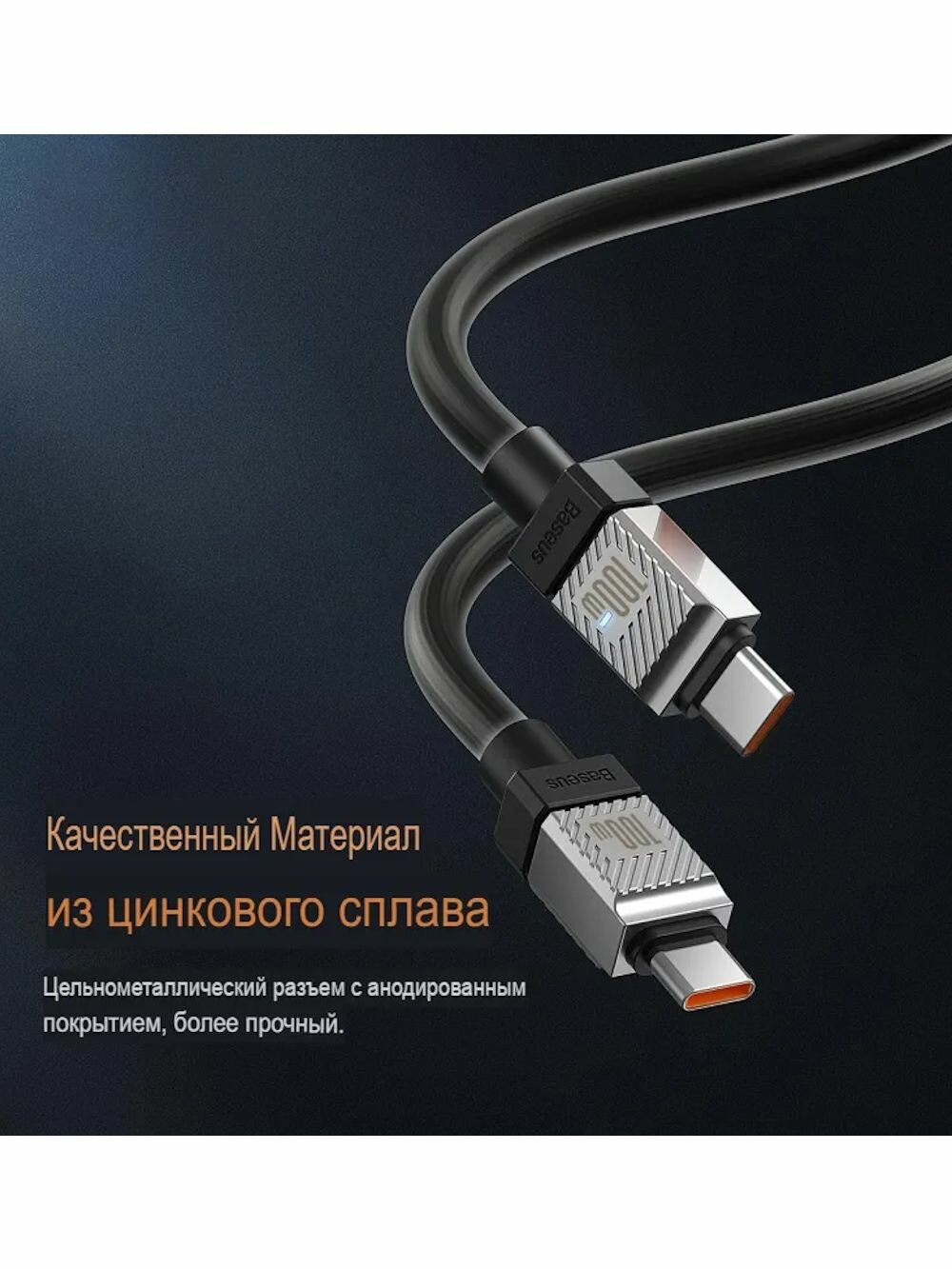 Кабель для быстрой зарядки Baseus CoolPlay Series 2 метра 100 Вт Type-C - Type-C (CAKW000301) интересное:
