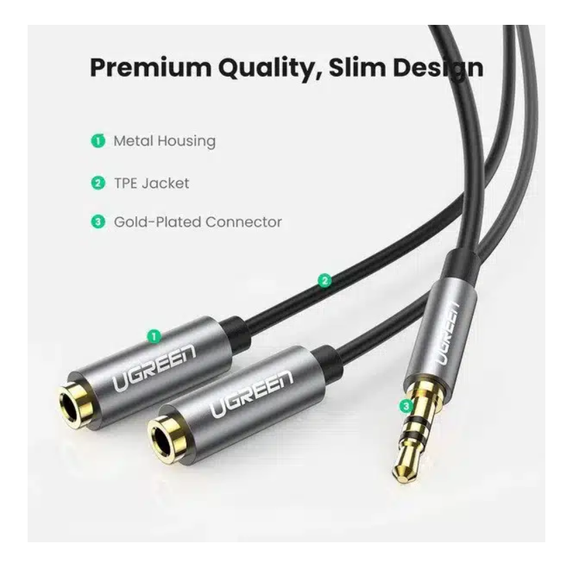Купить Переходник Ugreen AV141-30619 AUX 3.5mm (M) to 2 AUX 3.5mm (F), Mic + Earphone 0,2м, Black