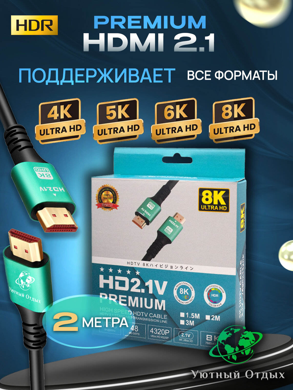 HDMI кабель 2.1 8K 2 метра для монитора в коробке 4k 8к, UHD 60 / 120 Гц, 48 Гбит/с, шнур для телевизора и PS5, XboxOne