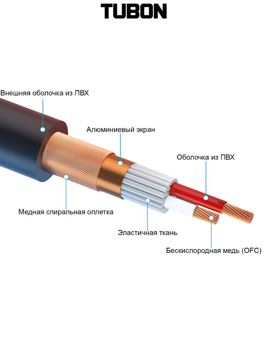 Кабель TUBON Стерео 6.3 мм jack (M) Male - 6.3 мм jack (M) Male OD6.0 ПВХ J002 5м интересное: