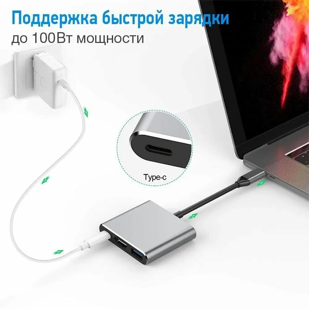 Универсальный адаптер переходник HUB USB 3.0 - HDMI - Type C, USB Type C, Мощность зарядки до 100W интересное: