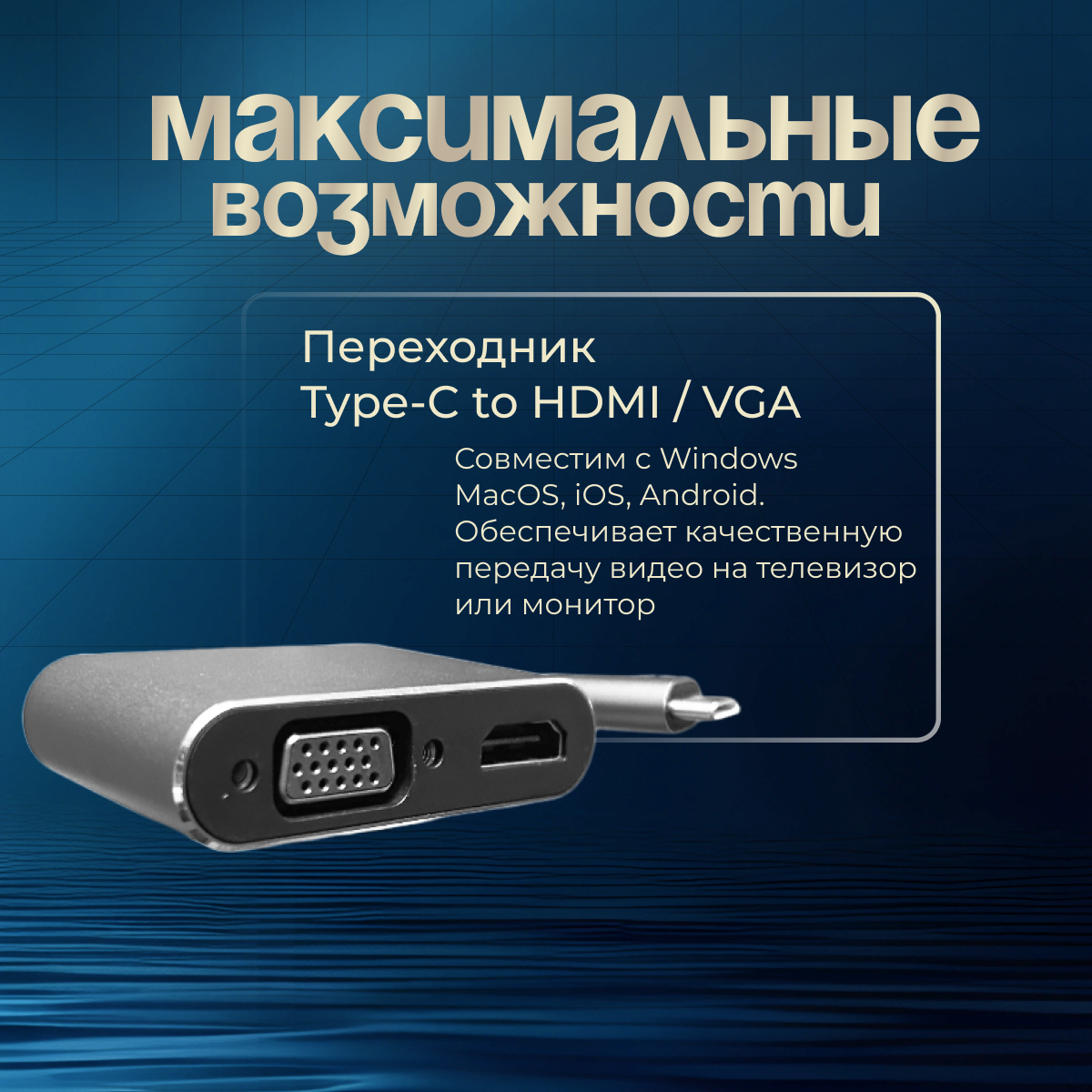 Универсальный кабель-адаптер Ultra HD (переходник) 2в1 с Type С на HDMI VGA интересное: