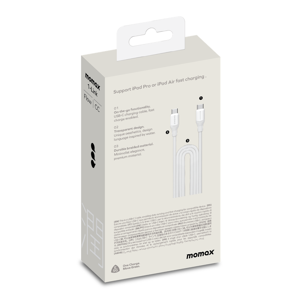 Купить Кабель Momax 1-Link Flow DC25W USB-C to USB-C 100W, 2,0м, White