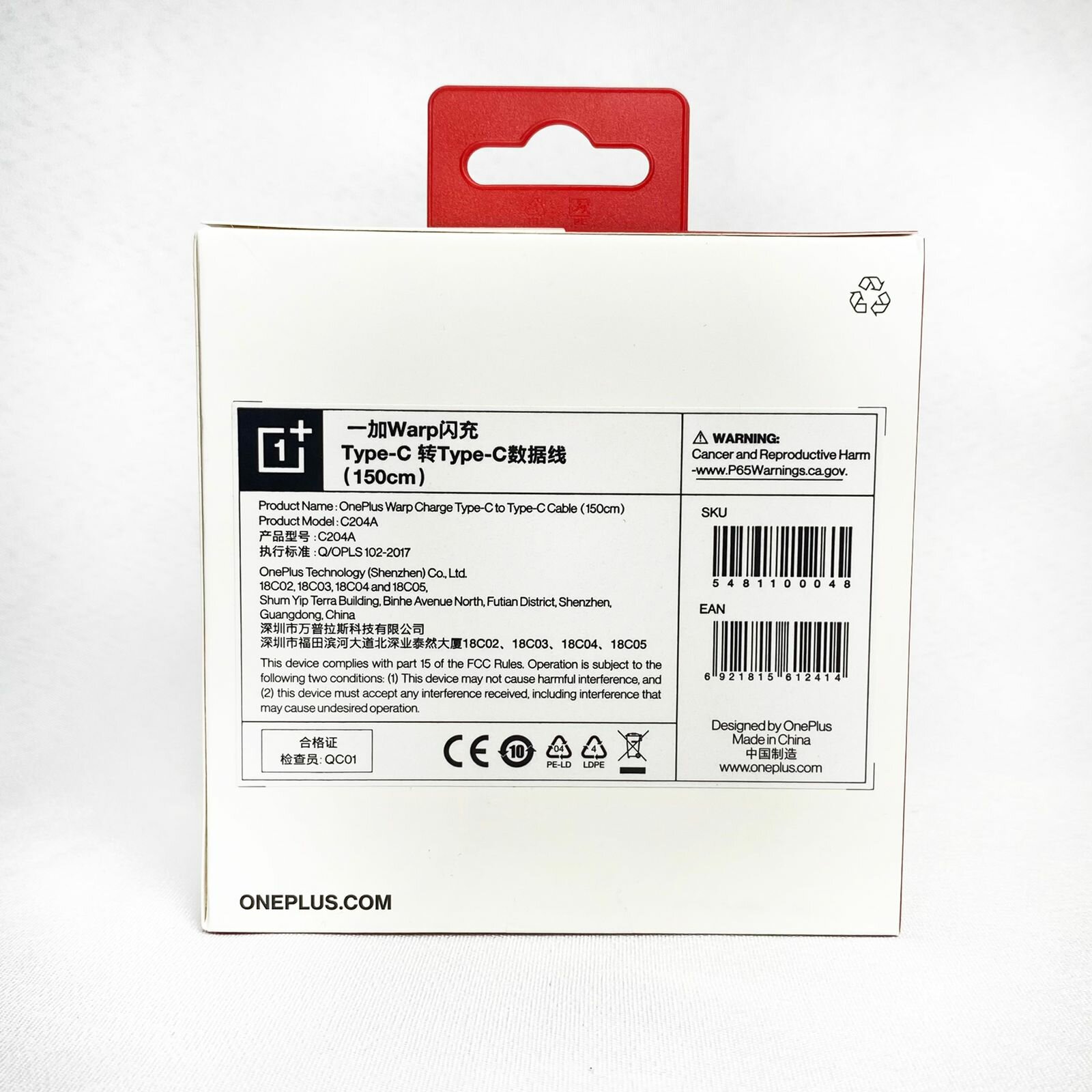 Кабель для OnePlus 8A(150см) Warp Charge (C204A) Type-C / Type-C . Быстрая зарядка. В упаковке интересное: