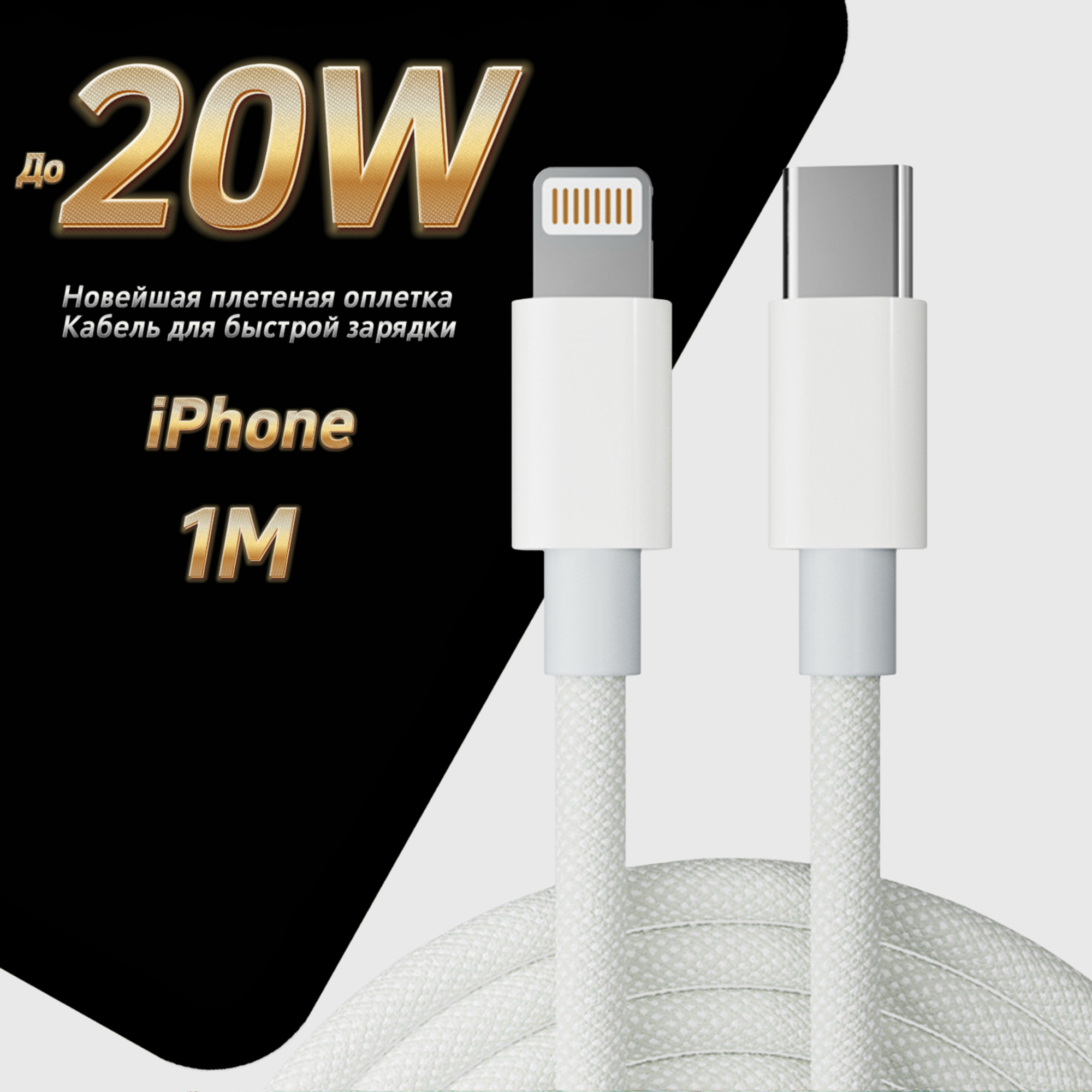 Кабель быстрой зарядки для iPhone, зарядка для iPhone, провод для айфона, Type C - Lightning, цвет белый интересное: