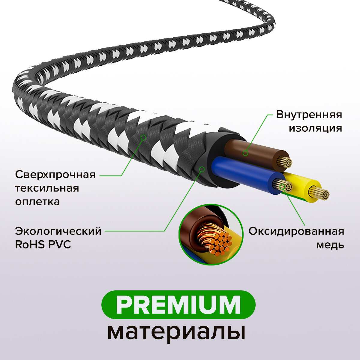 СохранитьКабель питания евровилка Schuko С13 текстиль для монитора компьютера 3*0,75mm (GCR-PC2) черно-белый 2.0м интересное: