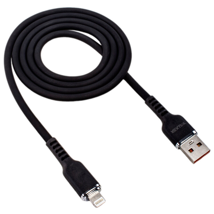 Купить Кабель USB с быстрой зарядкой и передачей данных, WALКЕR, C795, Lightning, 1м, 3.3А, мягкий силиконовый провод лайтинг для зарядки айфона, черный