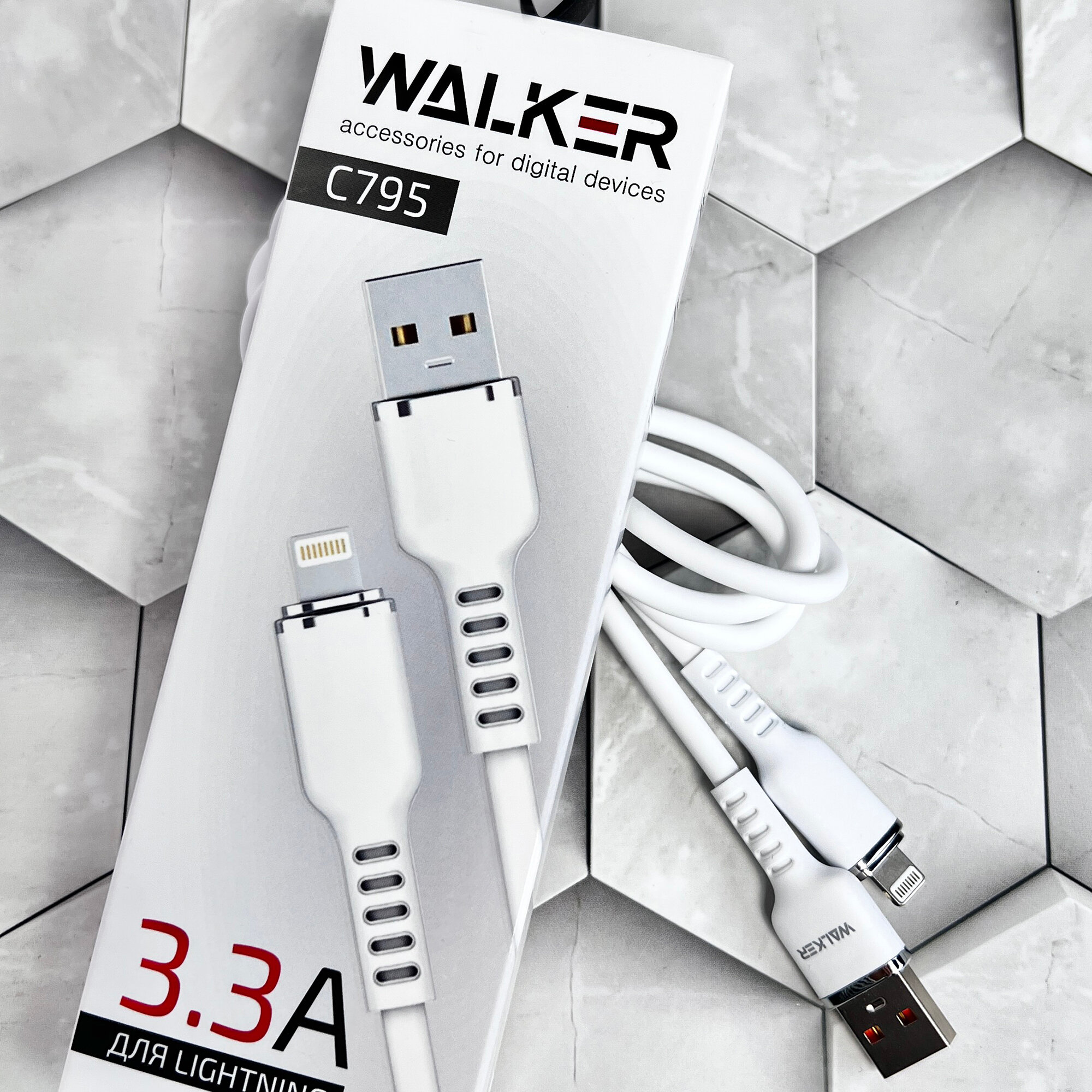 Кабель USB с быстрой зарядкой и передачей данных, WALKER, C795, Lightning, 1м, 3.3А, мягкий силиконовый провод лайтинг для зарядки айфона, белый интересное: