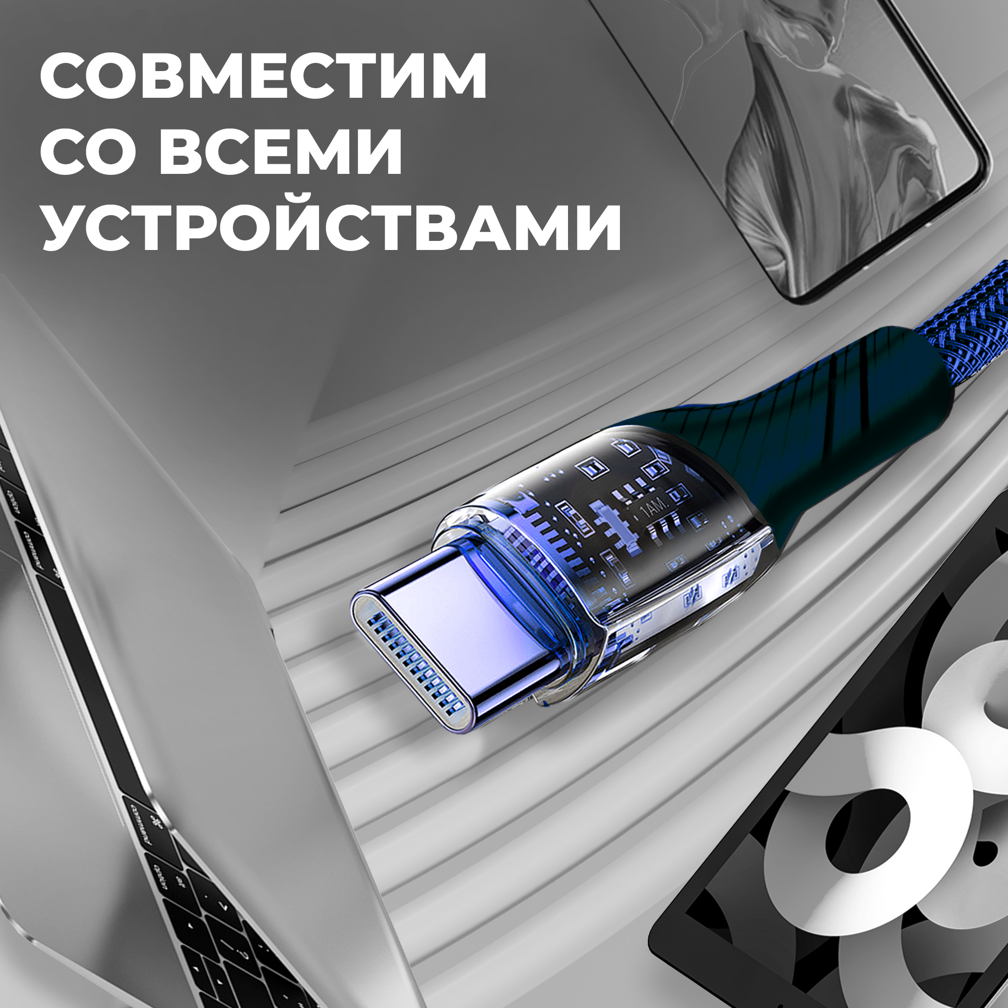 Кабель USB TypeC, 3.1А, 1м, быстрая зарядка и передача данных для телефона тайп си, провод для айфона, переходник, синий интересное: