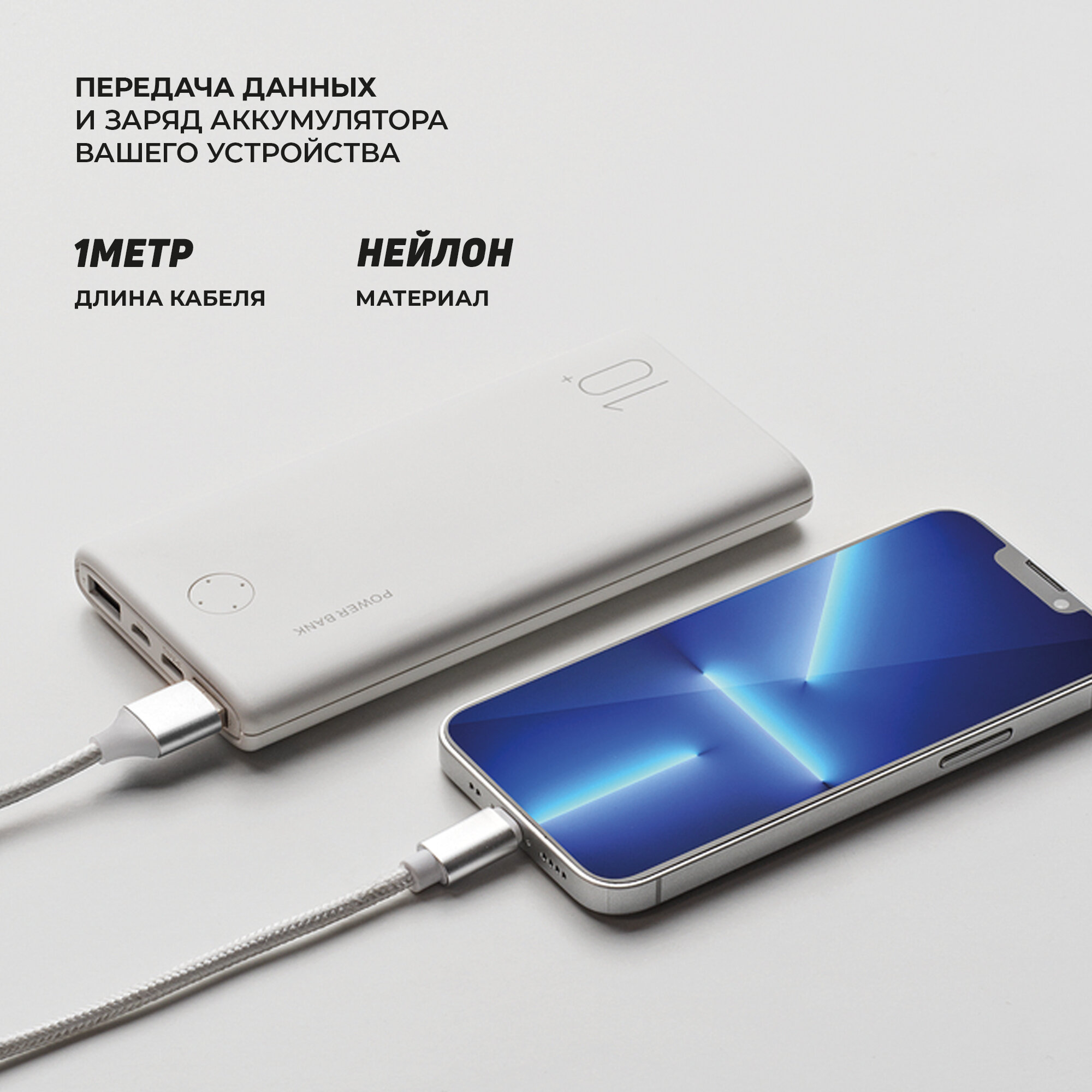 Кабель для зарядки смартфона USB-A - Lightning, 2A, 1 м, белый, нейлон, ахха, 7263 интересное: