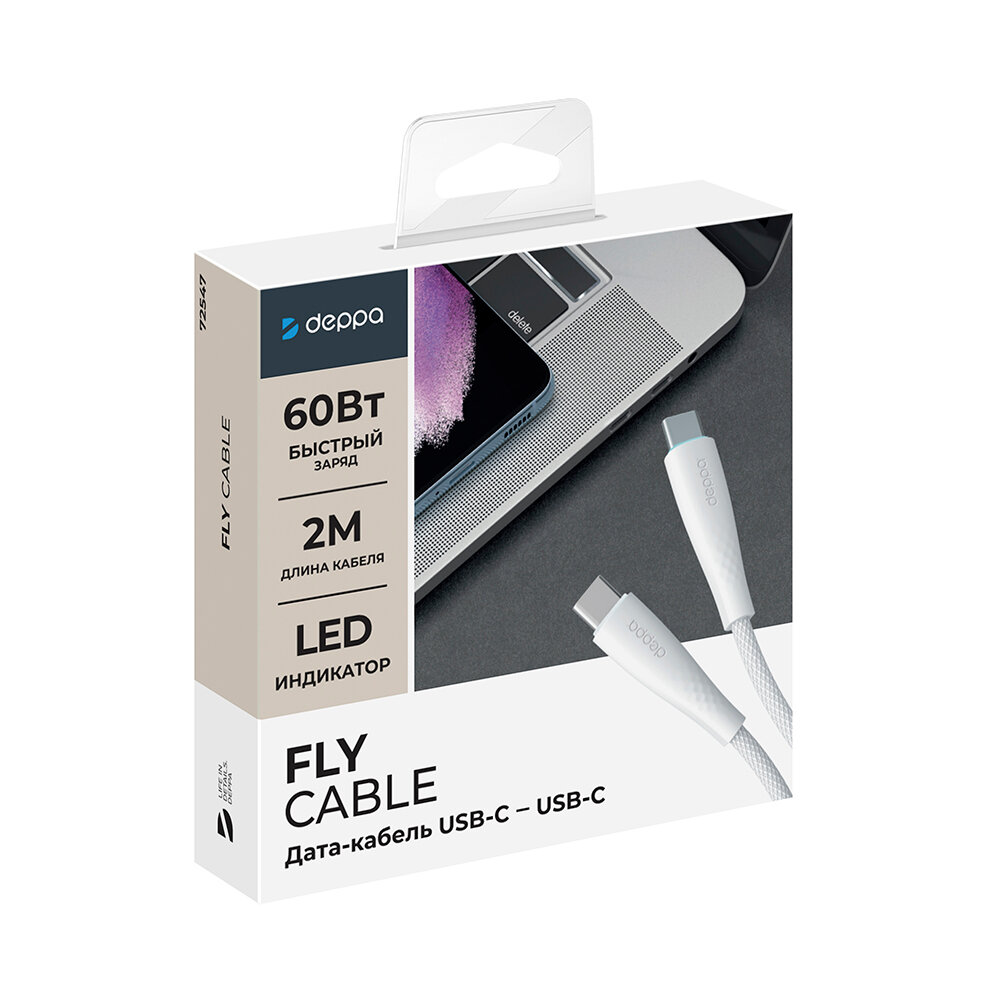 Кабель для зарядки смартфона Fly USB-С - USB-С, 60Вт, 2м, белый, Deppa, Deppa 72547 интересное: