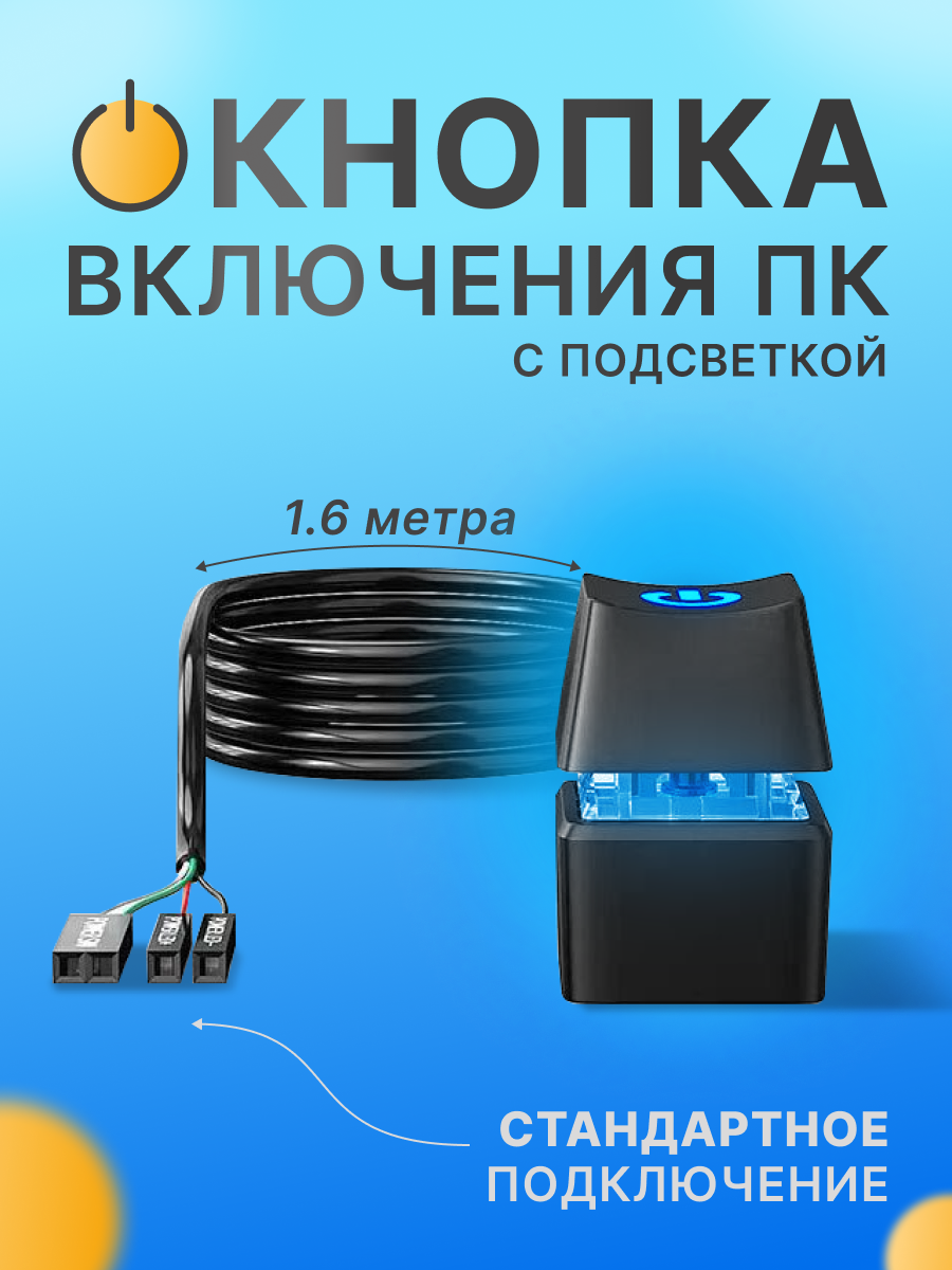 Кнопка включения компьютера внешняя механическая с подсветкой, 1.6 м интересное: