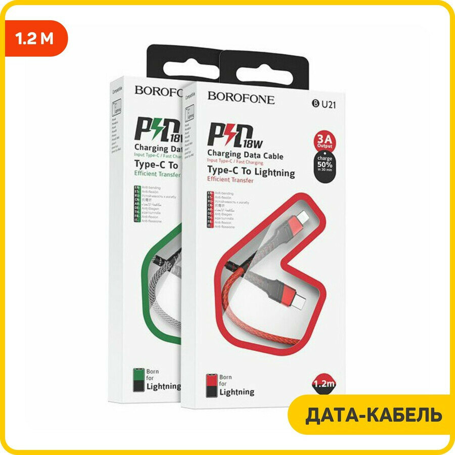Купить Дата-кабель Borofone BU21 Type-C-Lightning, 1.2 м, красный