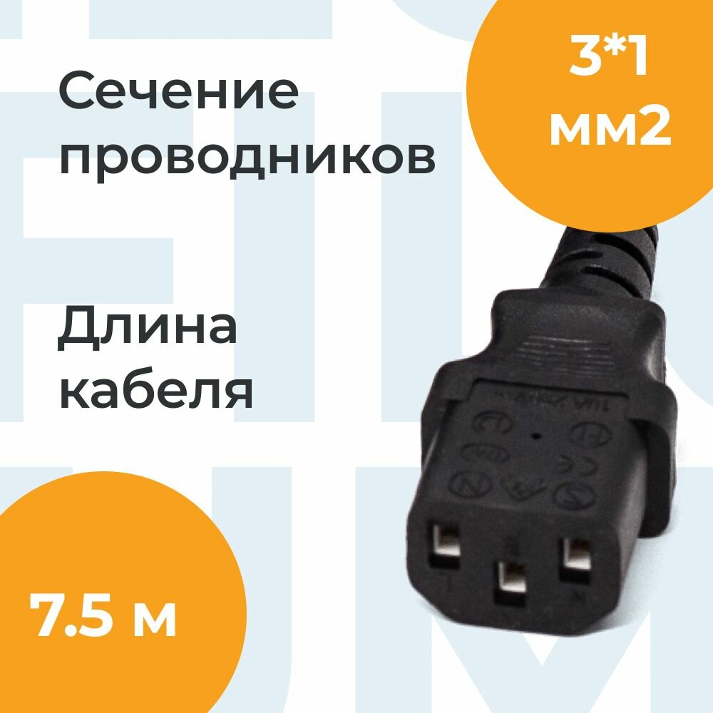 Кабель питания Filum CEE 7/7- С13, 7.5м, /FL-PC10-EU-C13-7.5M/ интересное: