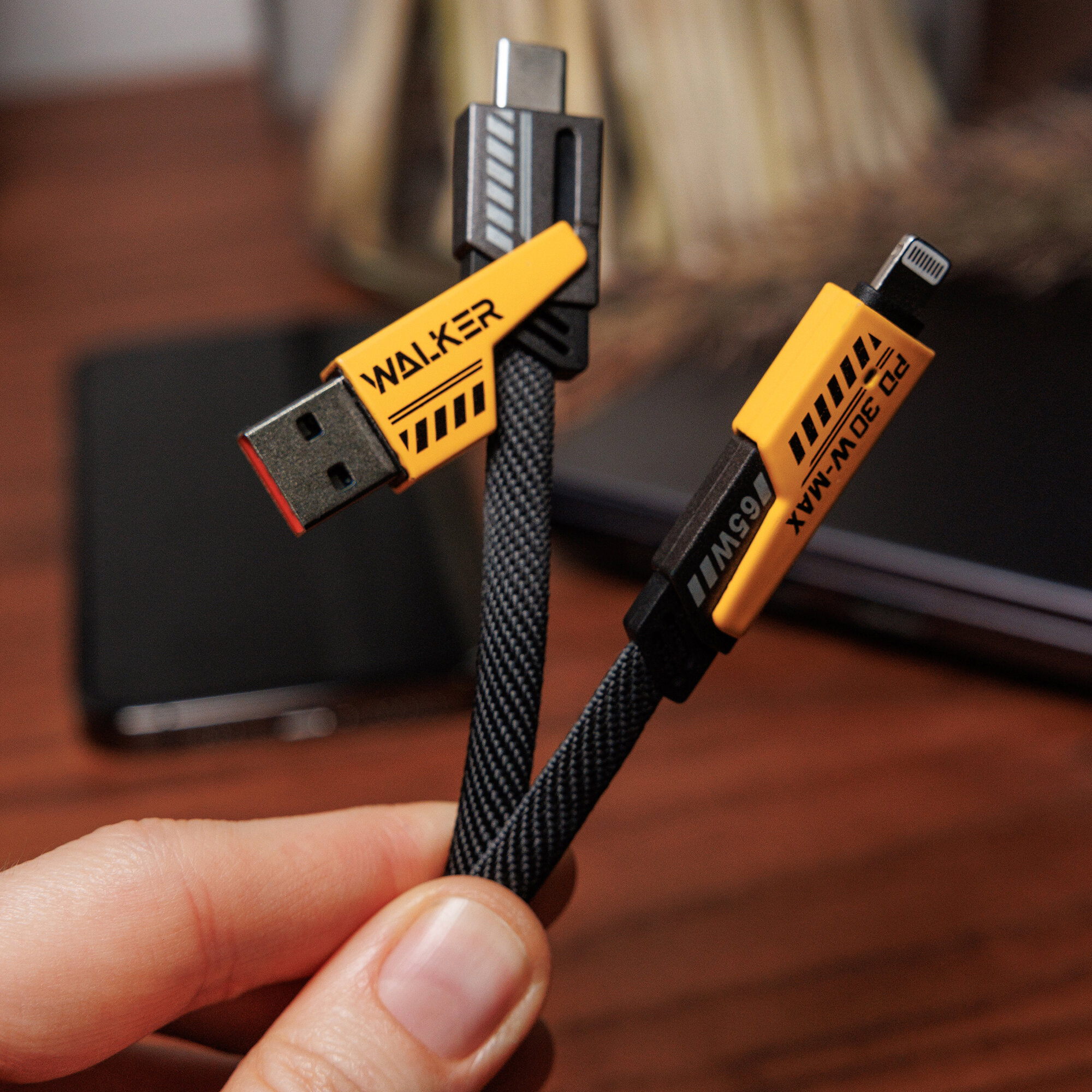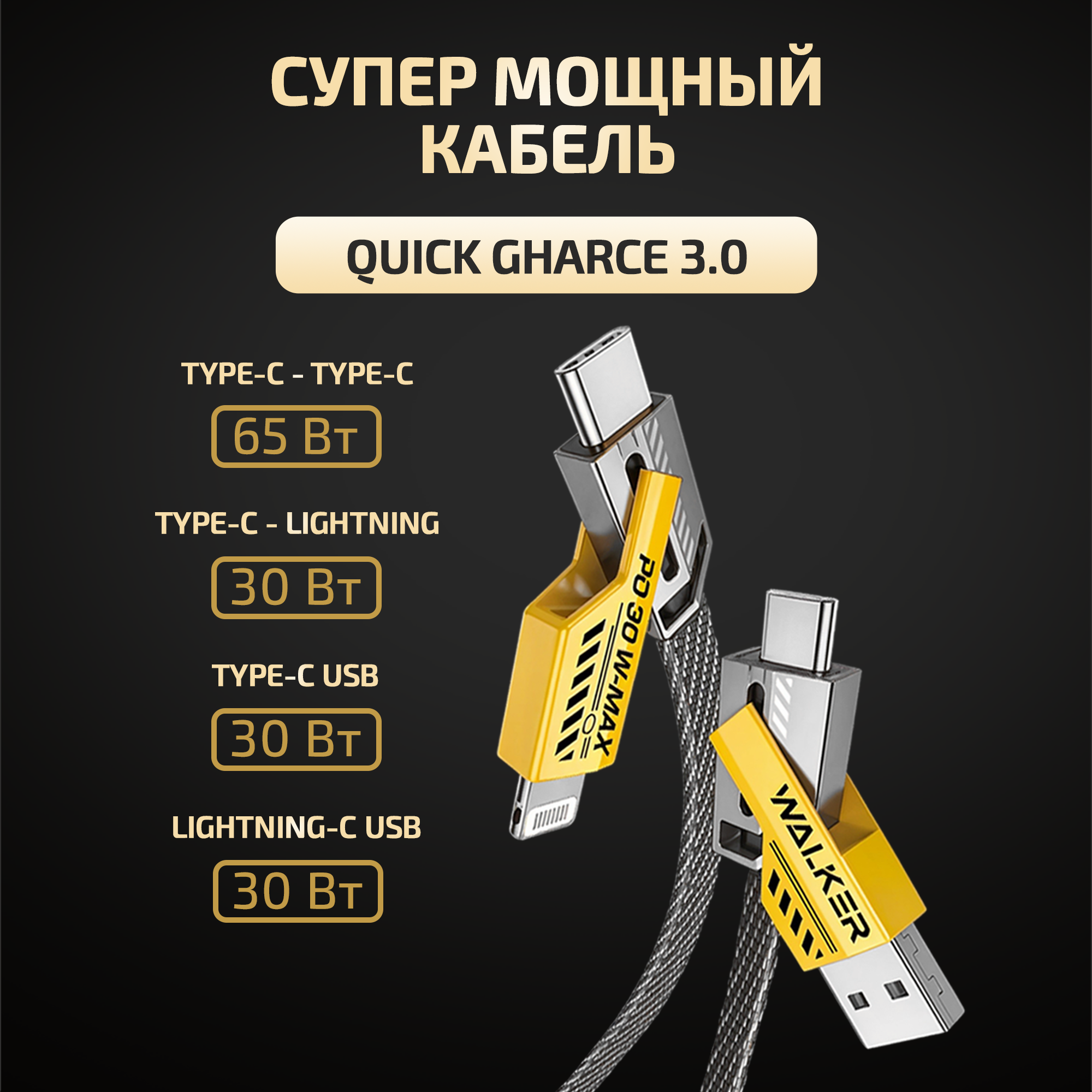 Кабель USB/Type-C-Type-C/Lightning, 65W, 4в1, PD/QC, кабель для айфона, как ugreen, hoco, baseus, нейлон, черно-желтый интересное: