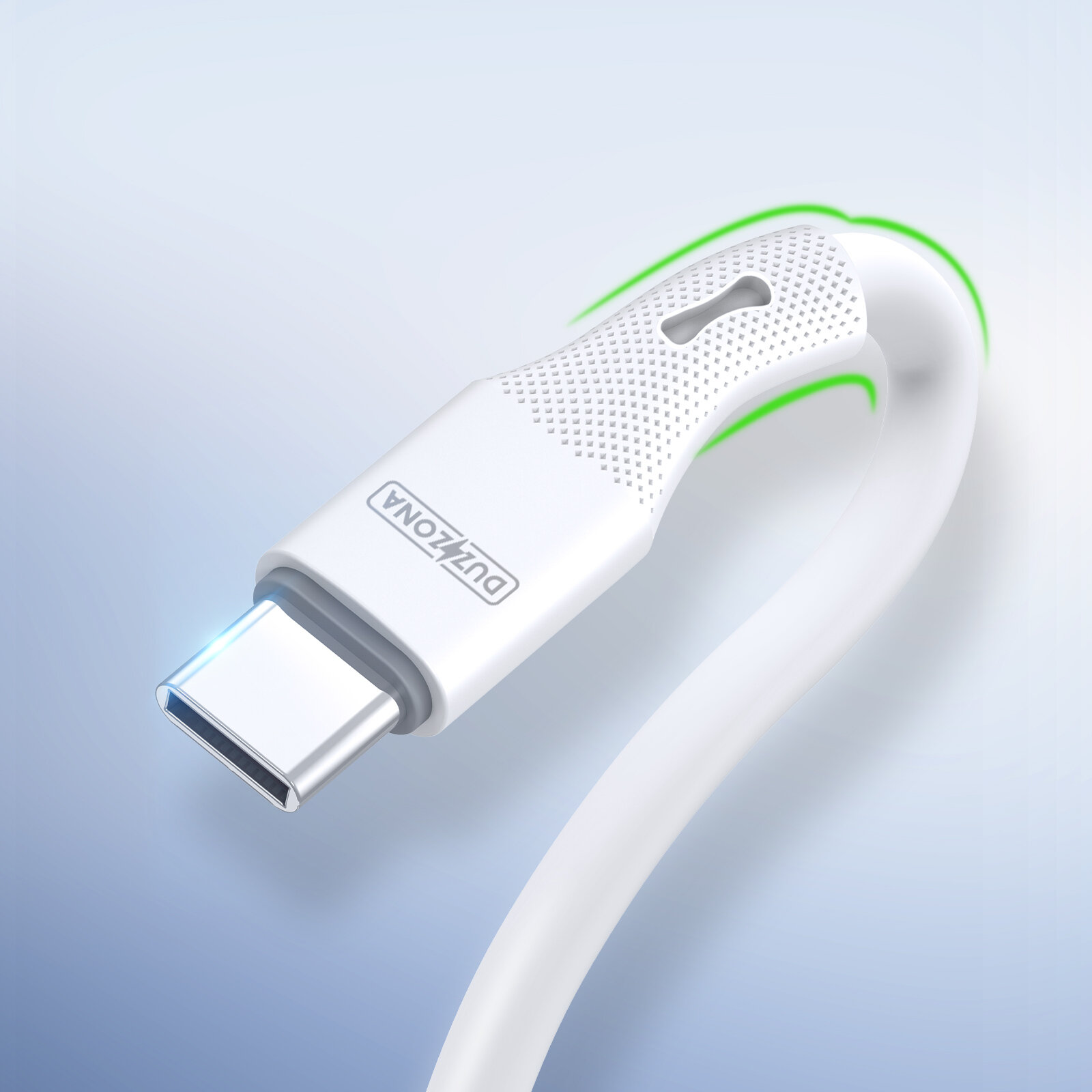 Кабель покрытый силиконом белого цвета 100см с разъемом Type C-Type C с быстрой зарядкой PD 65W от Duzzona, серия A11 Cable