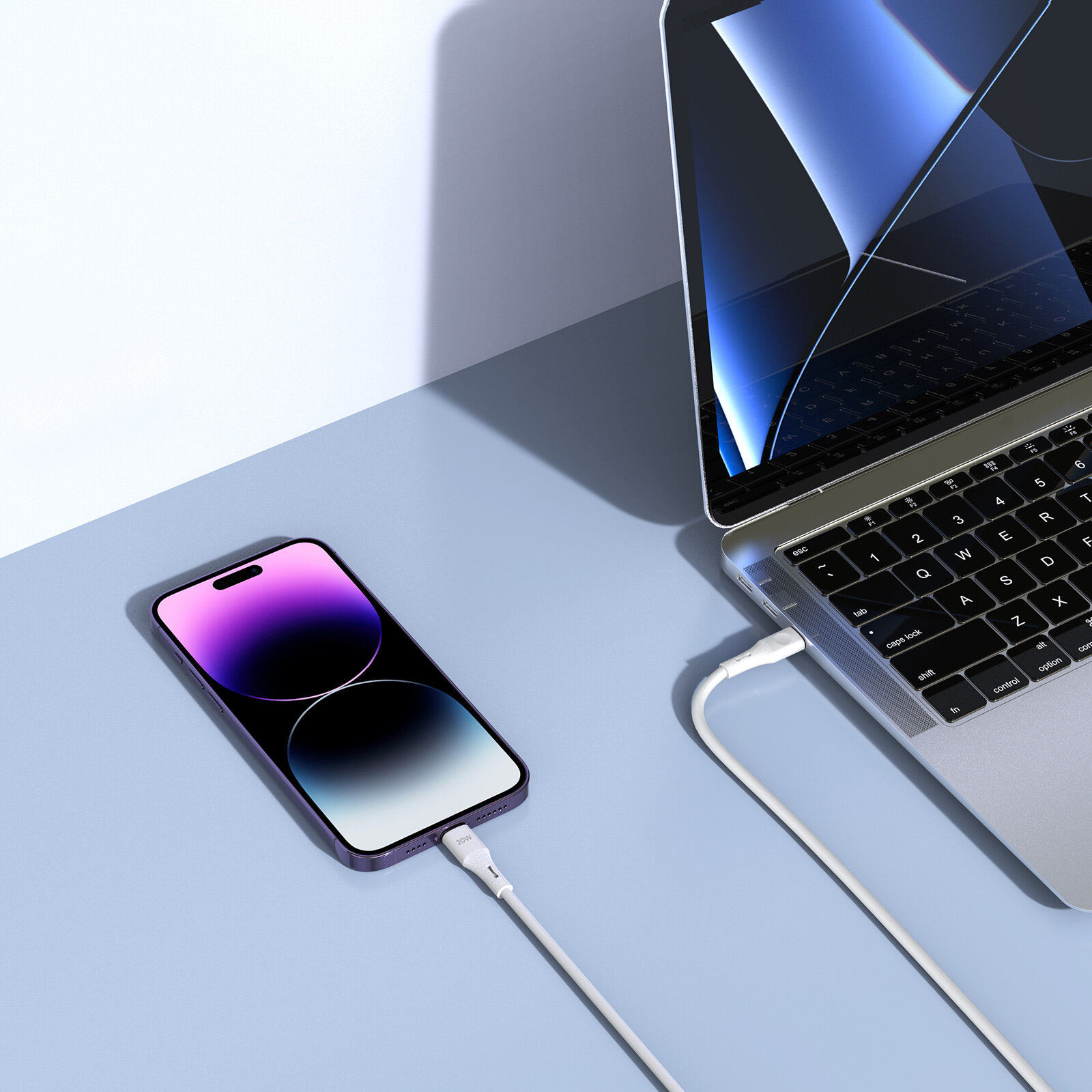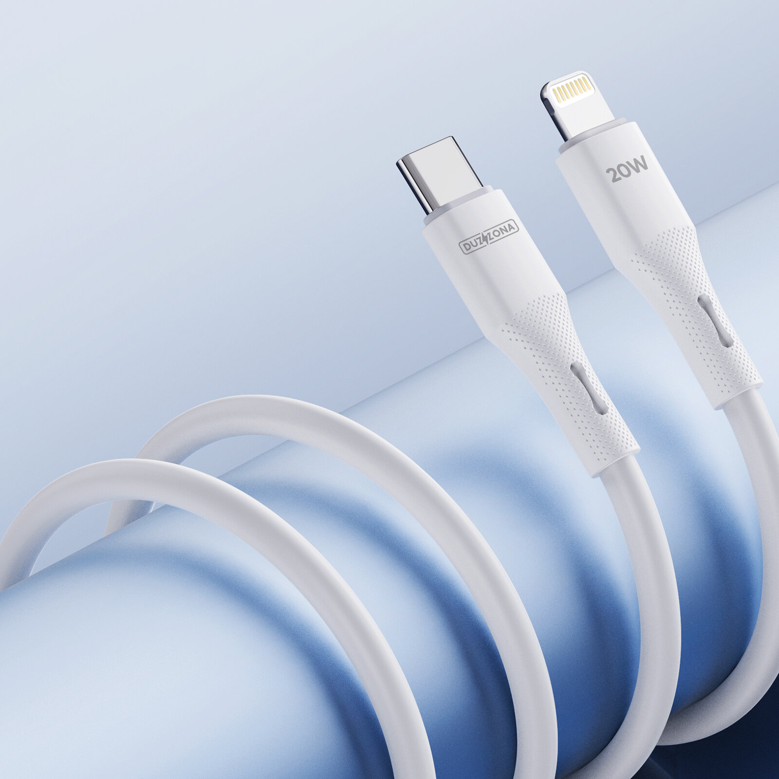 Купить Кабель белого цвета 100см с разъемом Type C на Lightning с быстрой зарядкой PD 20W от Duzzona, серия A10 Cable