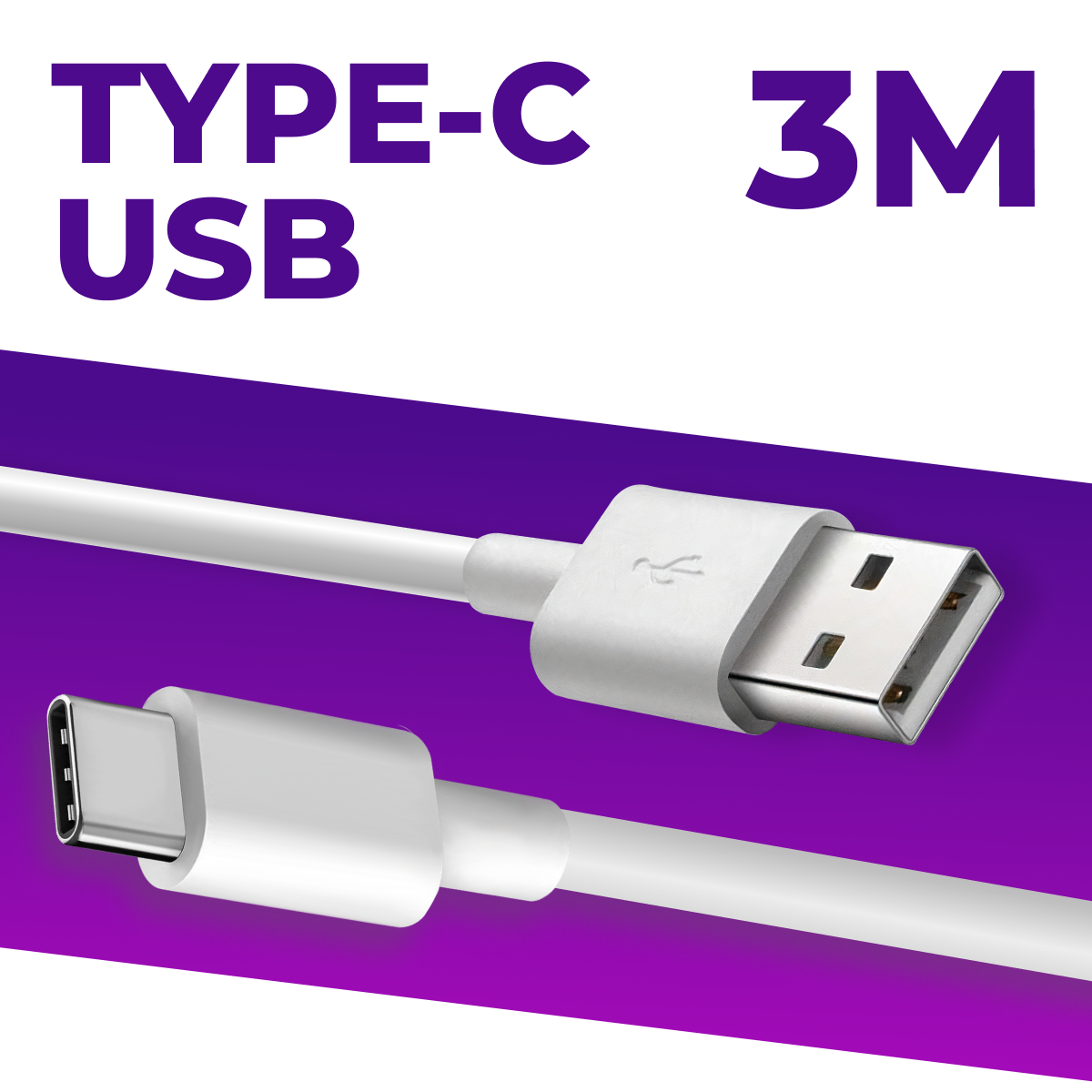 Зарядка для телефона 3 м USB - Type-C / Кабель, белый интересное: