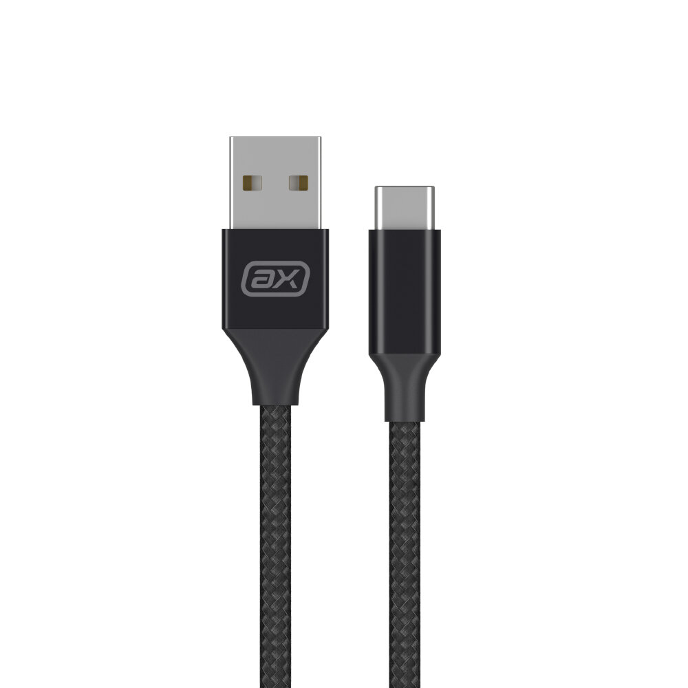 Купить Кабель для зарядки смартфона USB-A - Type-C, 2A, 2 м, черный, нейлон, АХХА 7269