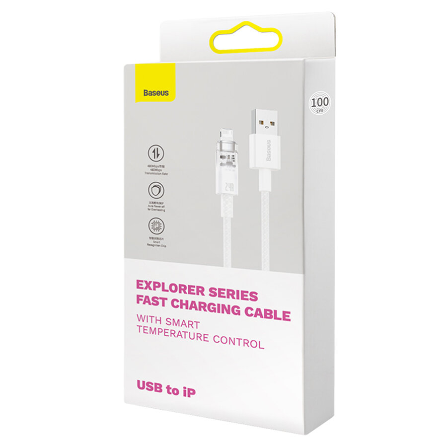 Кабель Baseus CATS010002 Explorer Series Fast Charging Cable with Smart Temperature Control USB to iP 2.4A 1m White