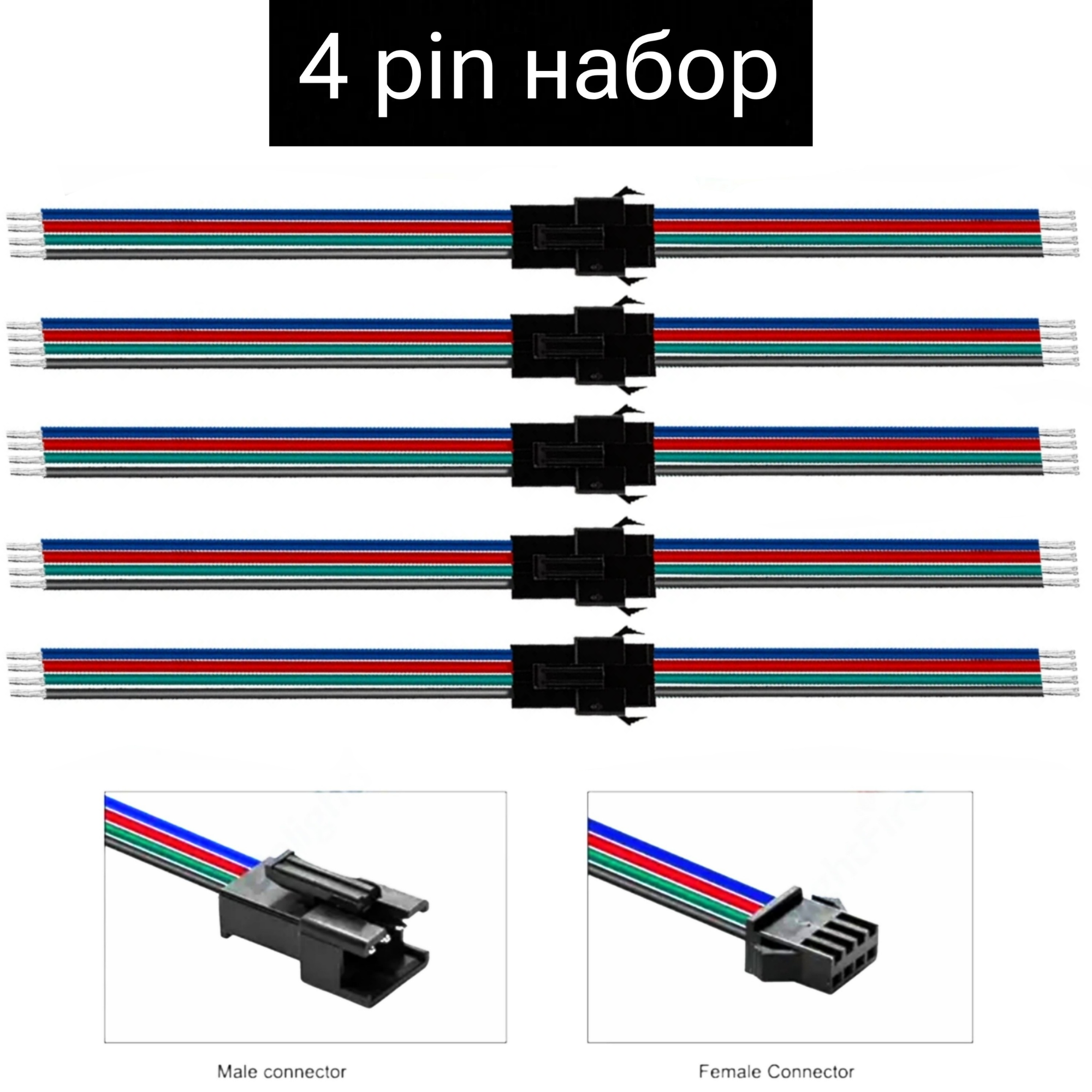 Купить Коннектор GSMIN JST SM / контактный разъём с проводом 4pin (M + F) 5 пар