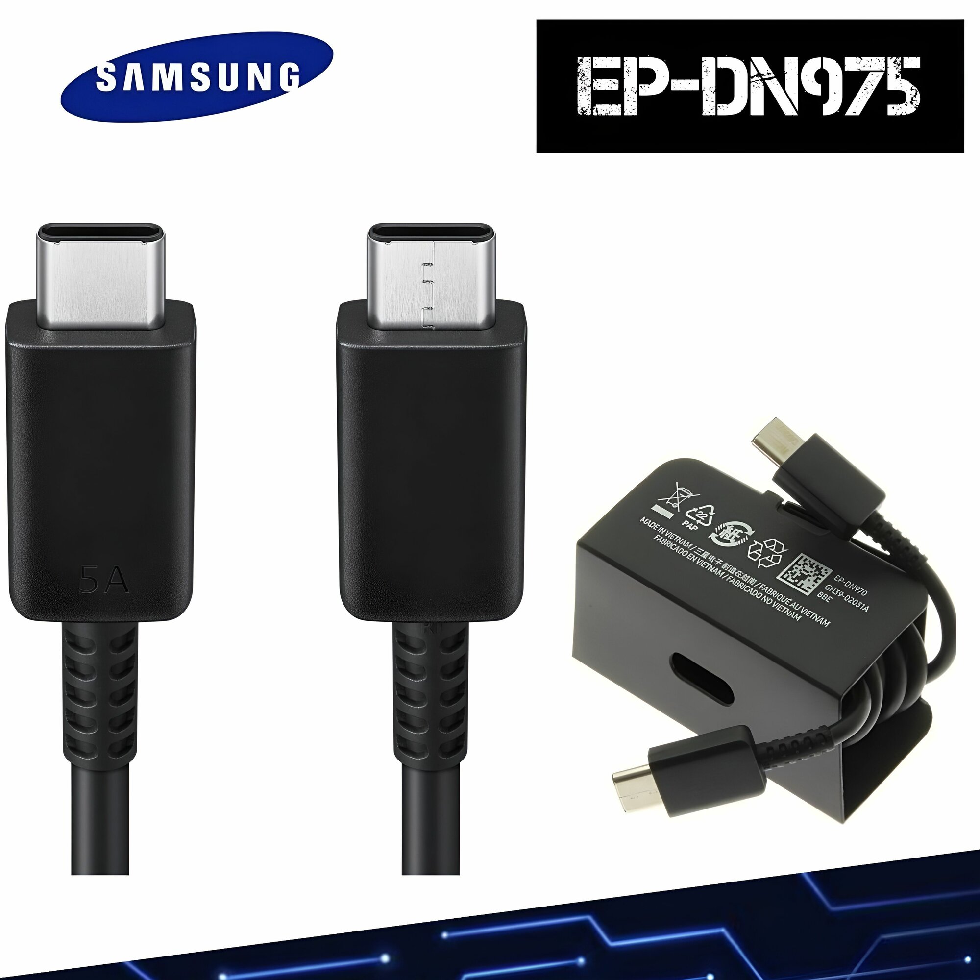 Кабель для Samsung Type-C, 5A быстрая зарядка EP-DX510 1.8 м, черный