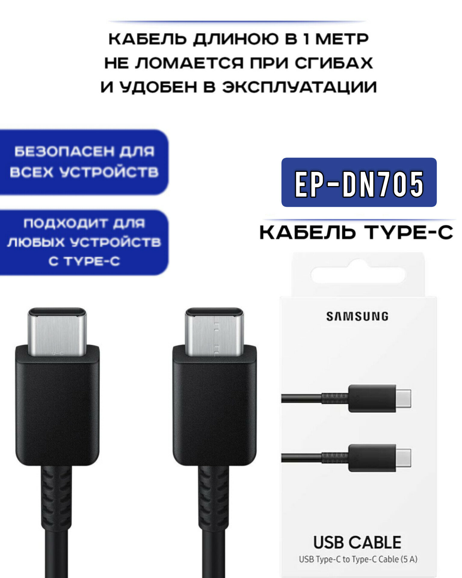 Кабель USB-C для Samsung 3A 1м Type-C EP-DN705 чёрный интересное: