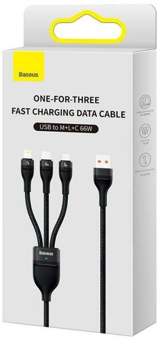 Купить Кабель Baseus Flash Series 2 One-for-three Fast Charging Data Cable USB - M+L+C 66W 1.2m (CASS040001) Черный