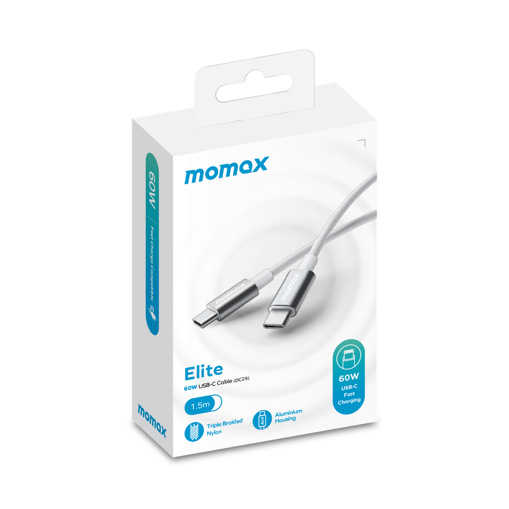 Купить Кабель зарядный Momax Elite DC30W USB-C to USB-C 60W, 1.5м, White