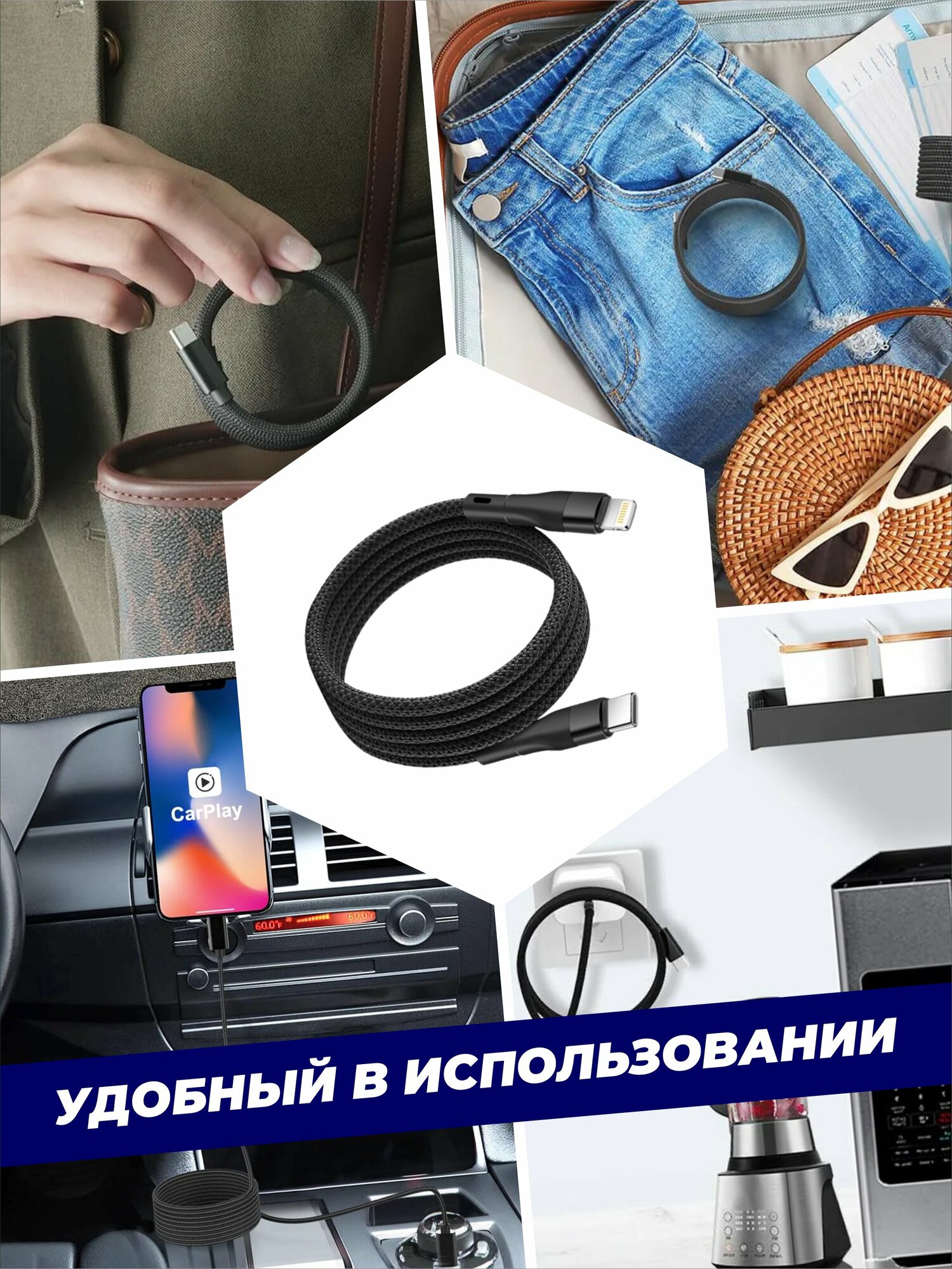 Кабель для зарядки USB Type-C - Lightning магнитный самосборный интересное: