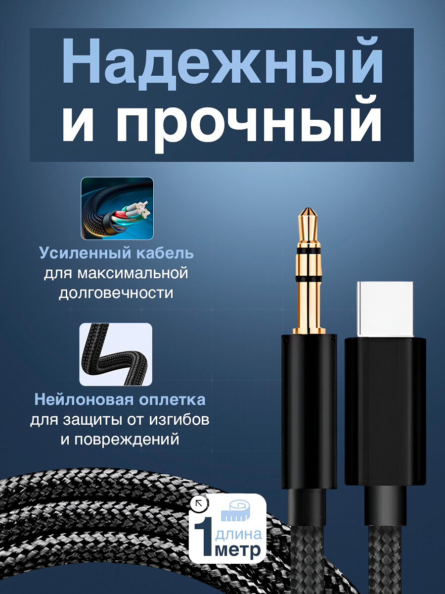Переходник USB Type-C на 3.5 jack, тканевая оплетка / переходник для наушников c Type-C на AUX / для Samsung, Iphone 15