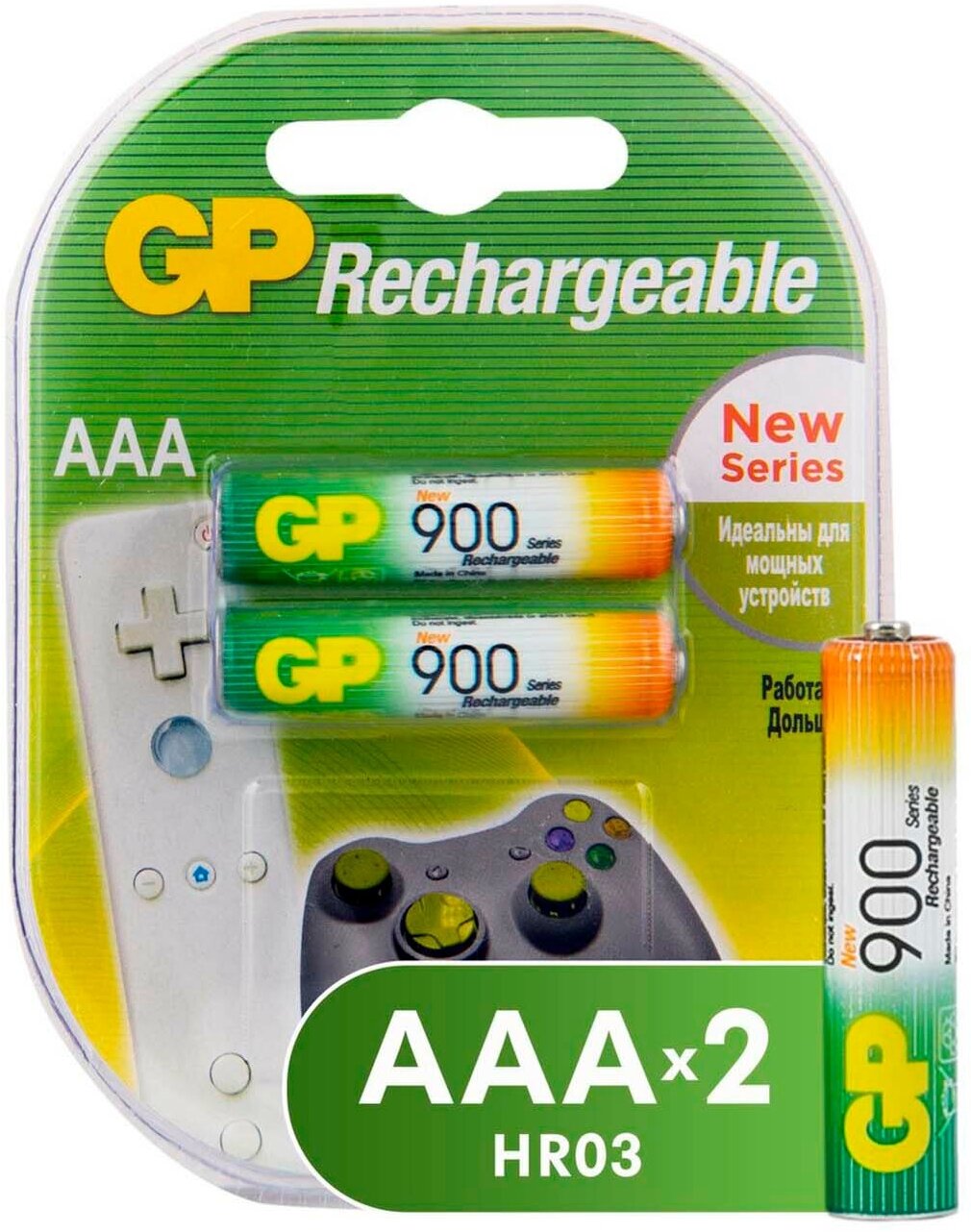 Аккумулятор Ni-Mh 900 мА·ч GP Rechargeable 900 Series AAA 2 шт блистер