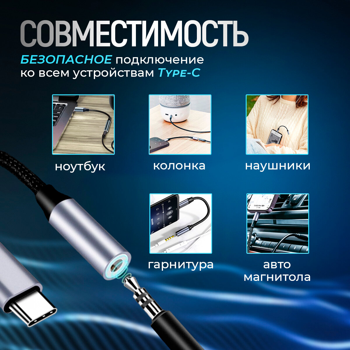 Переходник USB Type-C на 3.5 jack, тканевая оплетка / переходник для наушников c Type-C на AUX / для Samsung, Iphone 15 интересное:
