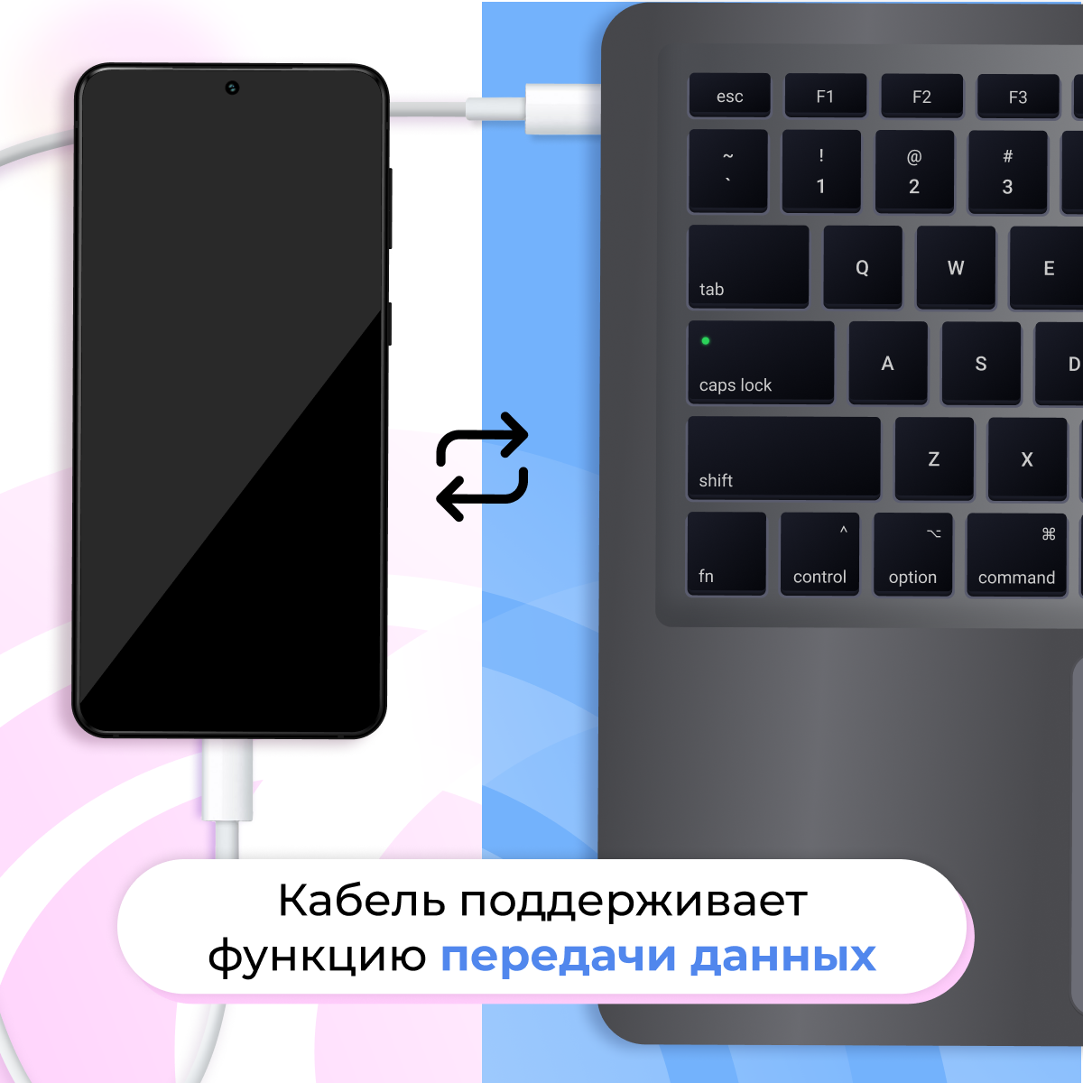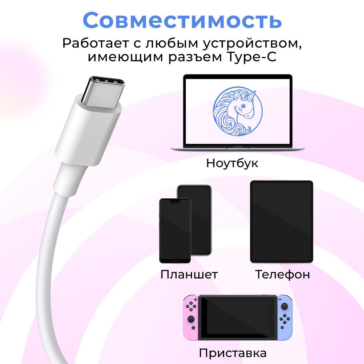 Купить Кабель Type-C 1м — быстрая зарядка и передача данных для iPhone 15, Samsung, Xiaomi, ноутбуков, белый