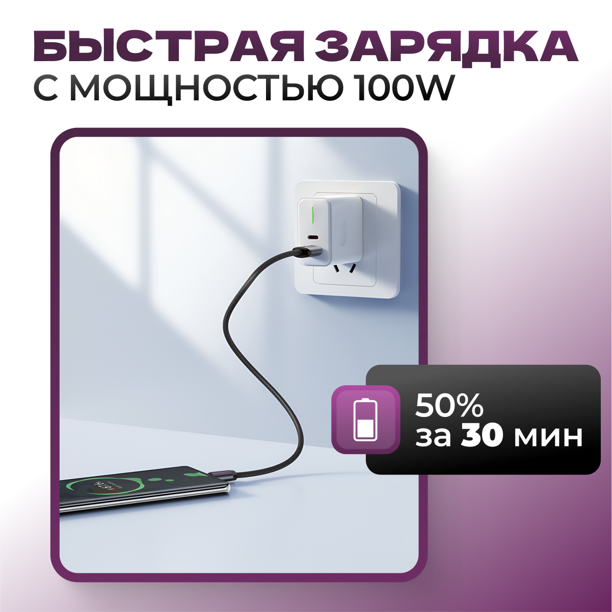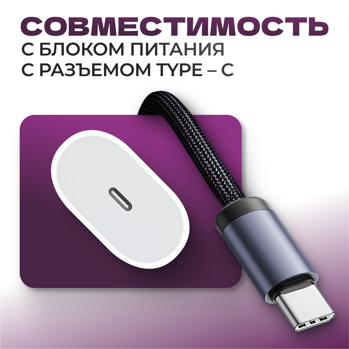 Кабель Type-C 1м — быстрая зарядка и передача данных для iPhone 15, Samsung, Xiaomi, ноутбуков, белый