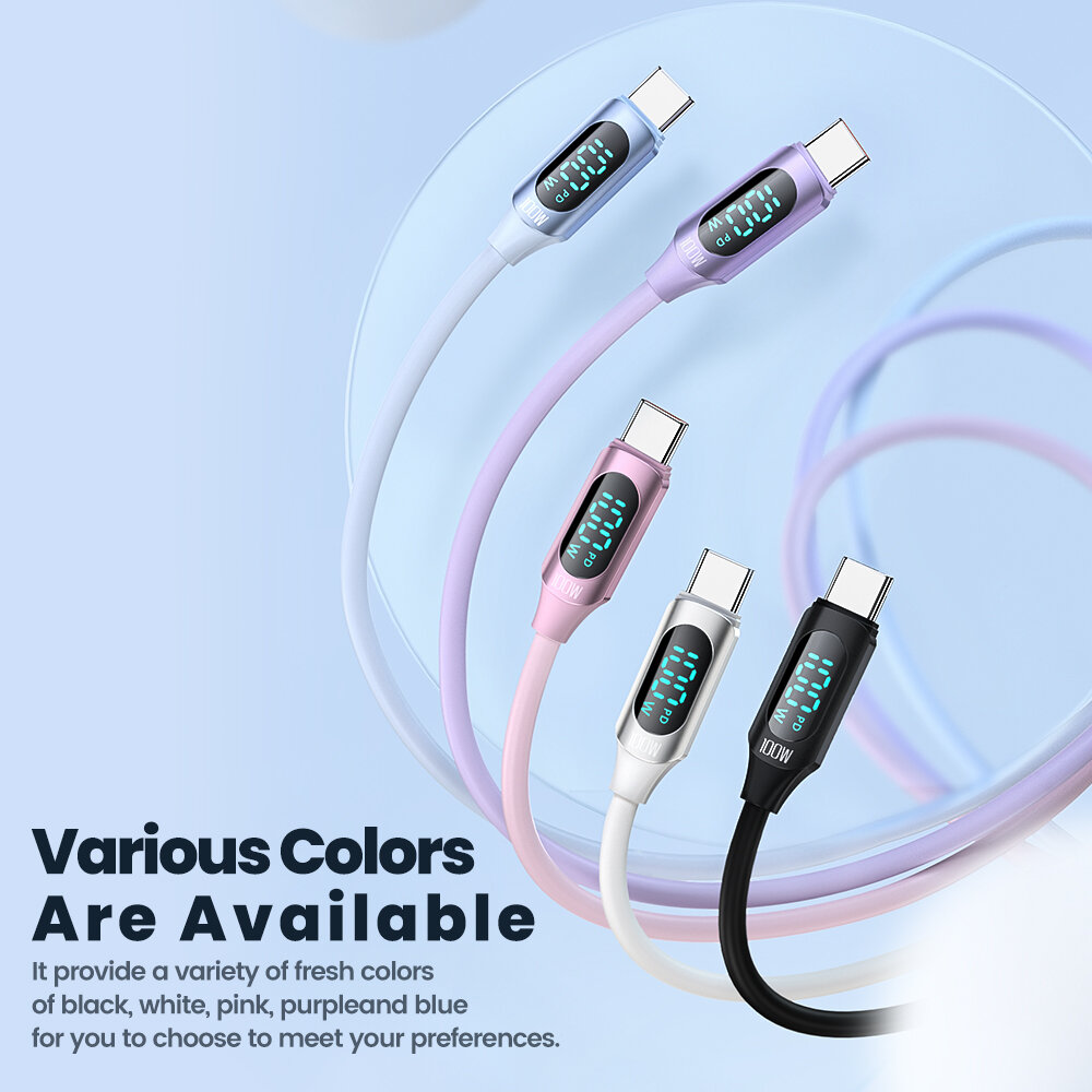 Силиконовый кабель Ultra Soft для передачи данных с цифровым дисплеем Toocki Type-C-Type-C мощностью 100 Вт интересное:
