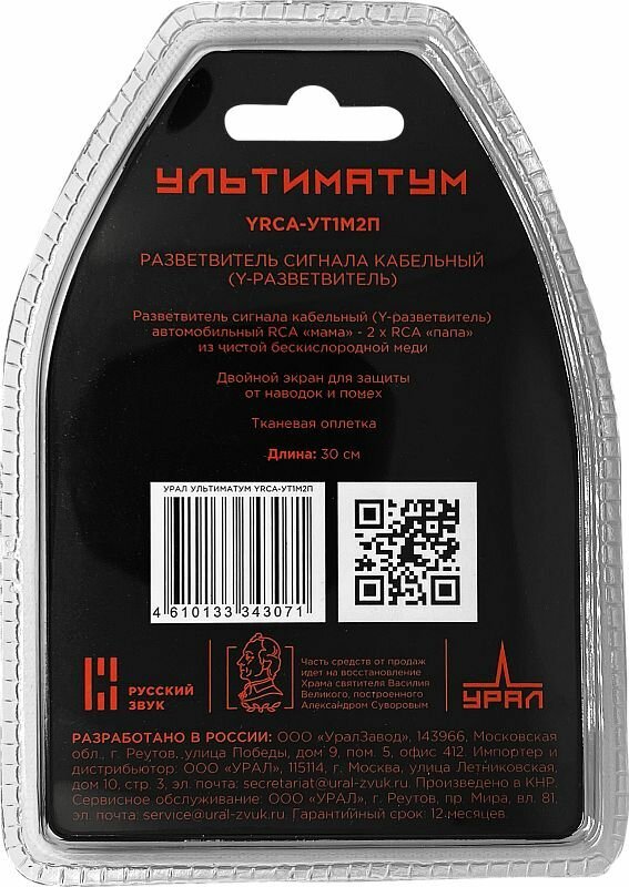 Провод соединительный урал ультиматум YRCA-УТ1М2П RCA-Разветвитель 1МАМА-2ПАПЫ интересное: