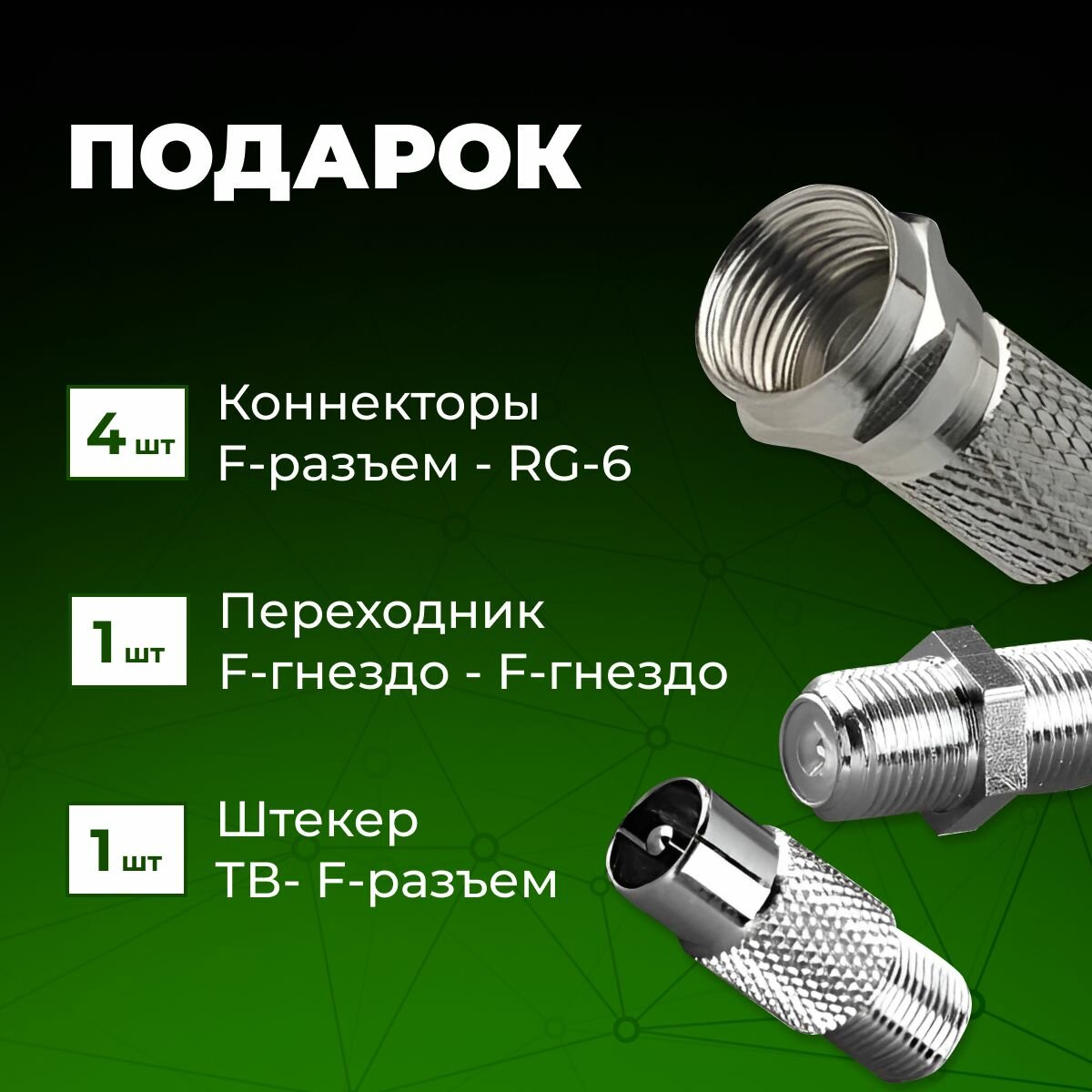 Антенный кабель для телевизора 50 метров, RG-6, коаксиальный, внутренний CCS, 48%, 75 OM