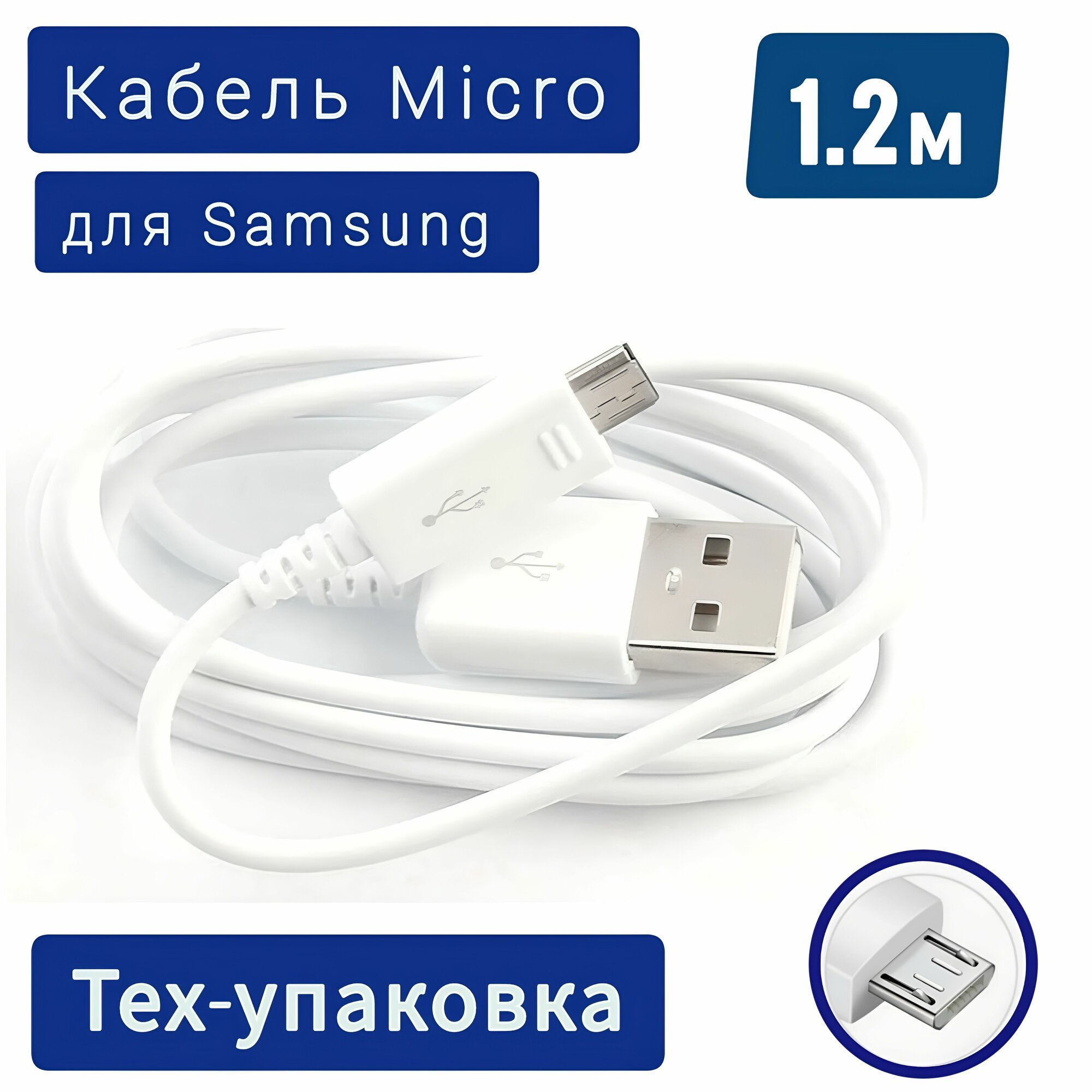 Кабель USB 2.0 Type-A/micro 1.2м, 3A для Samsung Тех-упаковка EP-DG925 Белый интересное: