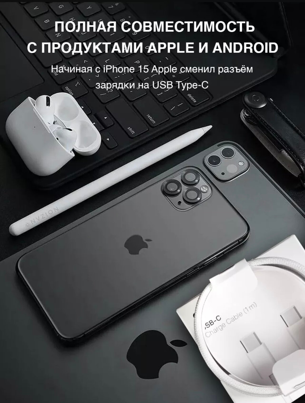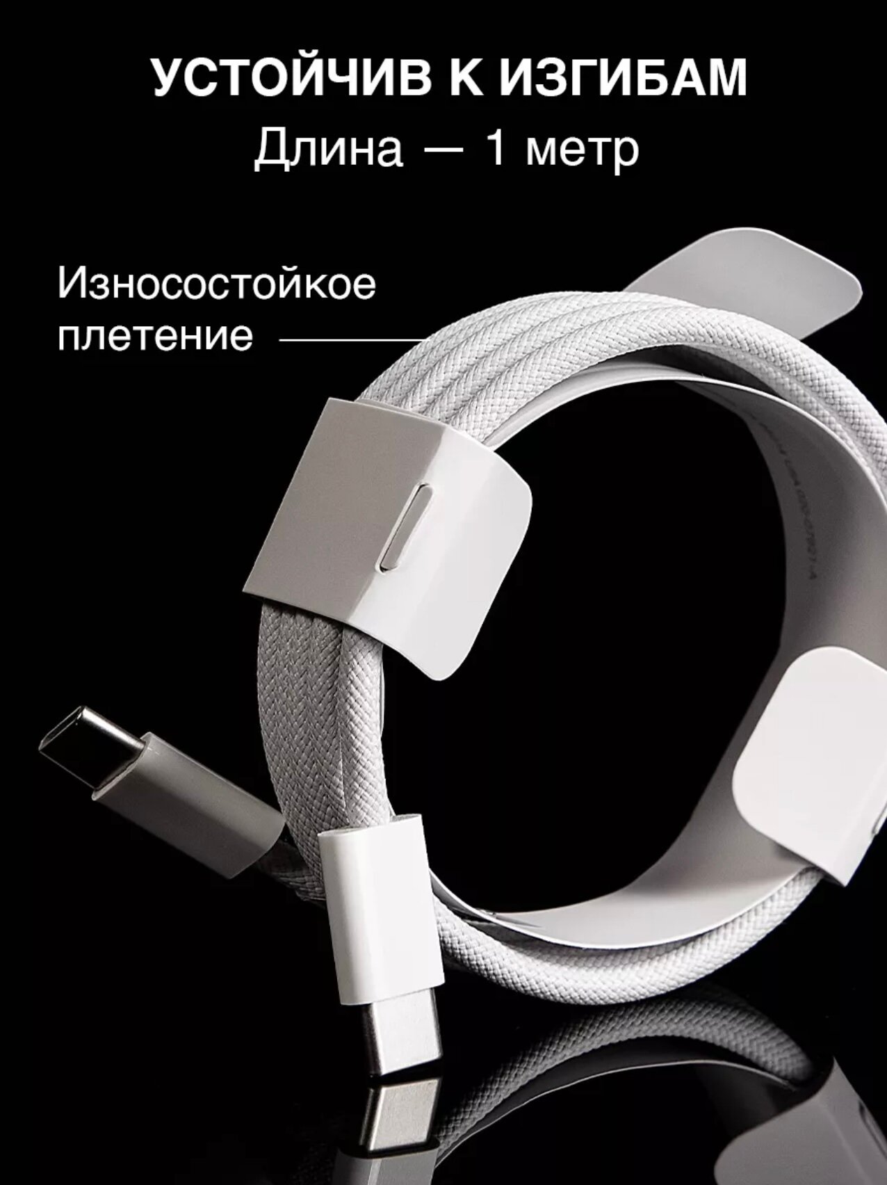 Плетеный кабель Type-C 60W для iPhone 15,15 Pro,15 Pro Max, 15 Plus/16,16 Pro,16 Pro Max,16 Plus 1 метр/белый интересное: