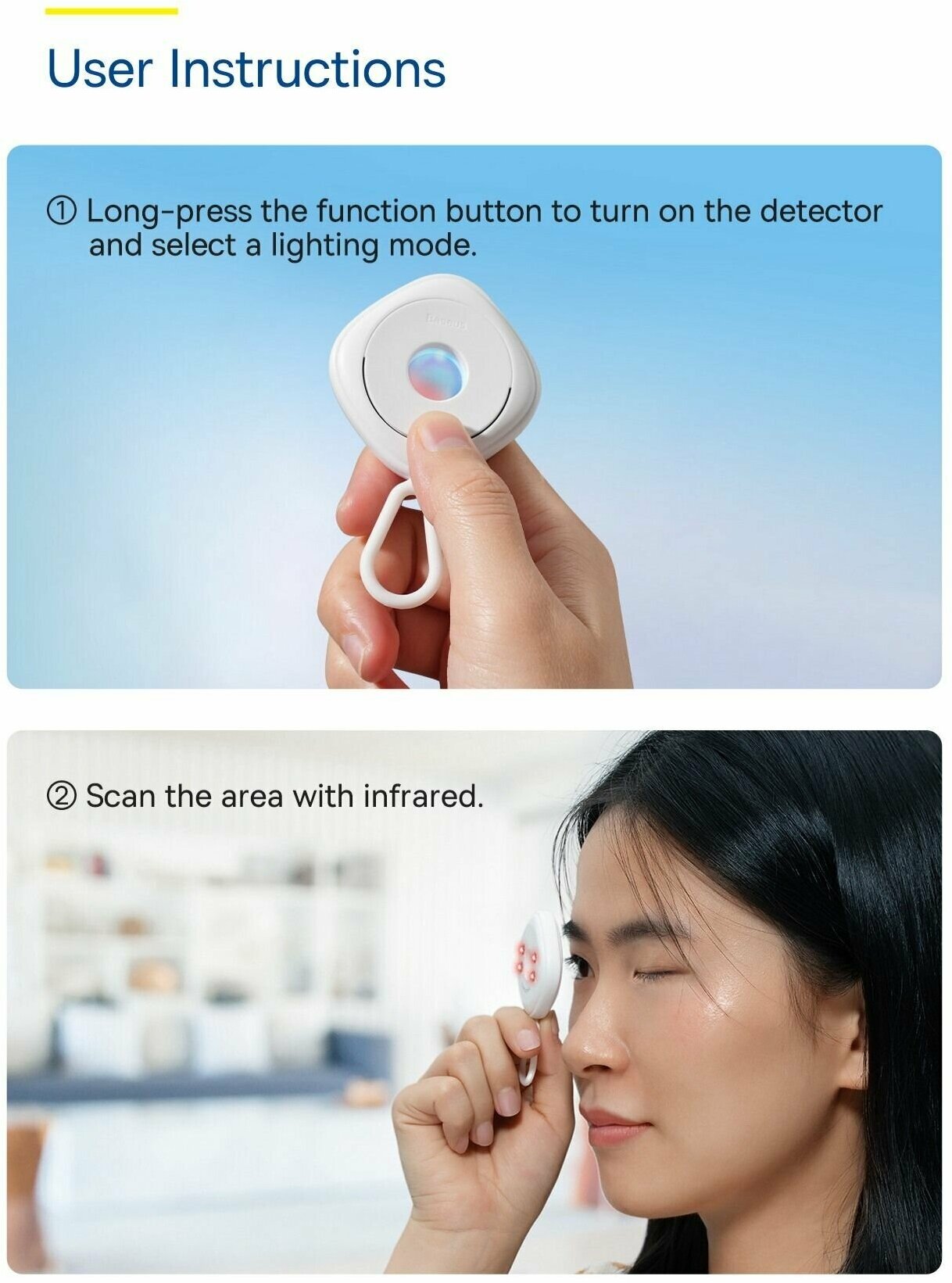 Детектор скрытых камер Baseus Heyo Camera Detector White (With Simple charging cable USB Type-C 0.3m) белый интересное: