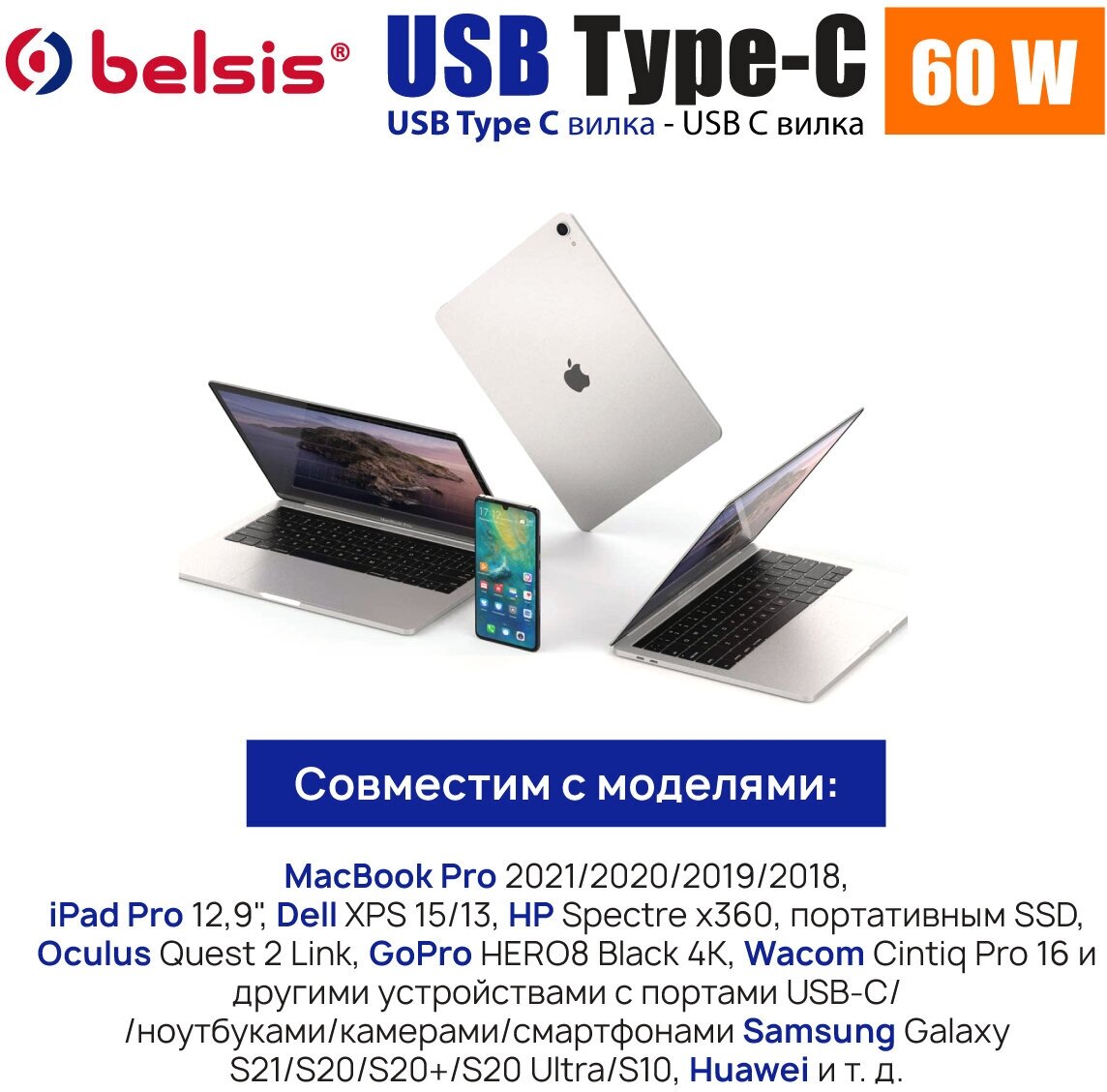 Кабель USB Type C- Type C с быстрой зарядкой 60W Belsis,1 метр/BW1881 интересное: