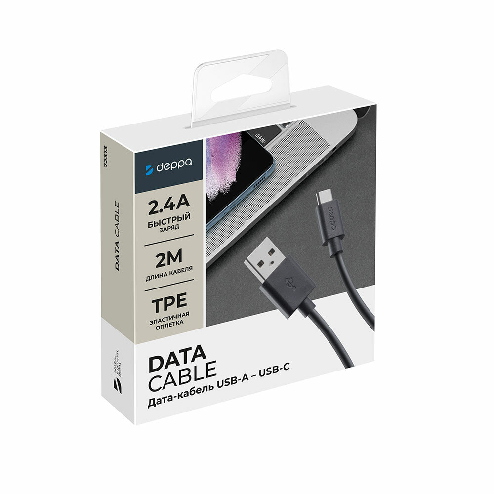 Кабель для зарядки смартфона USB-A - USB-C, USB 2.0, 2.4A, 2м, черный, Deppa 72313 интересное:
