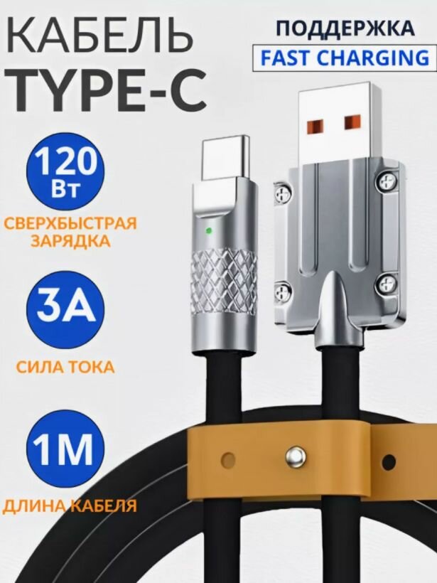 Усиленный мощный кабель USB - Type-C для смартфонов и планшетов черный интересное: