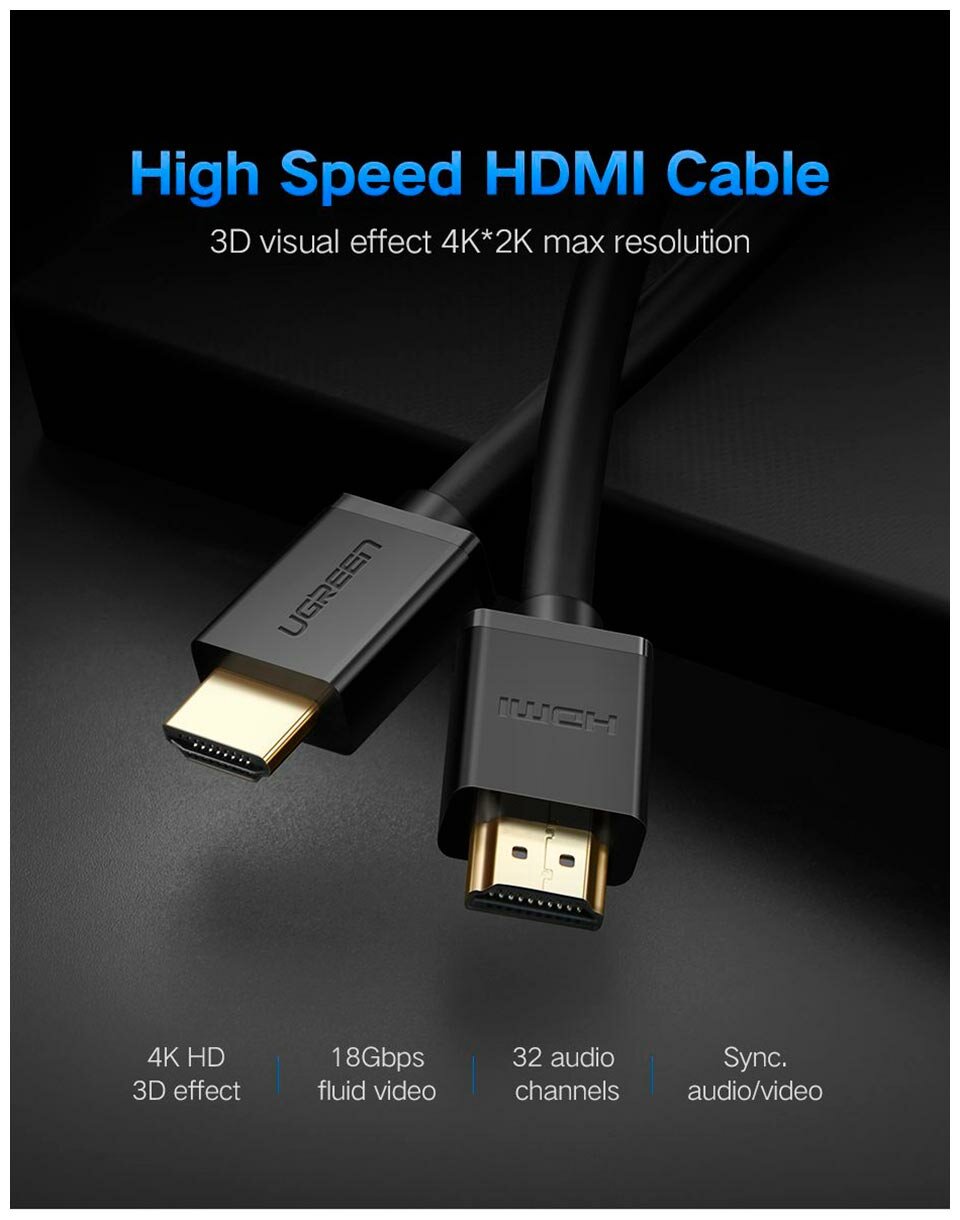 Купить Кабель Ugreen HD104 (10108) HDMI- HDMI, 3м, черный