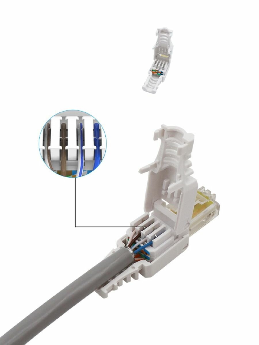 Купить Коннектор RJ45 с самозажимным механизмом для ручной работы с витой парой UTP CAT 5e 2шт. Разъем RJ-45